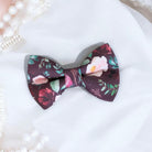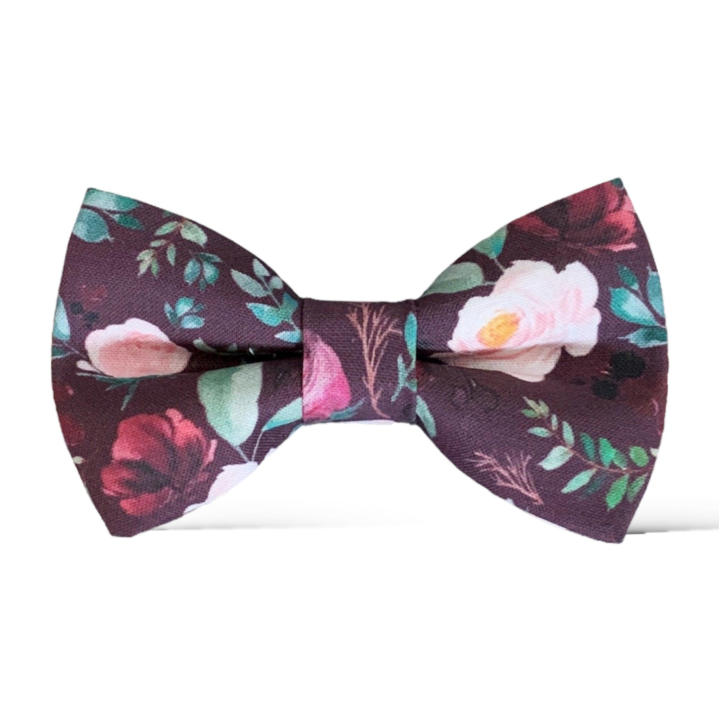 Cabernet Floral Bow Tie for burgundy weddings, fall weddings, winter weddings, groomsmen, ring bearer bowtie, rustic celebrations, and elegant formal events. This burgundy floral bow tie features rich cabernet tones with delicate floral accents, making it the perfect accessory for grooms, groomsmen, and ring bearers. Ideal for romantic wedding themes, vineyard weddings, boho chic weddings, and deep jewel-tone color palettes, this floral bow tie adds depth, style, and sophistication to any outfit.