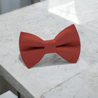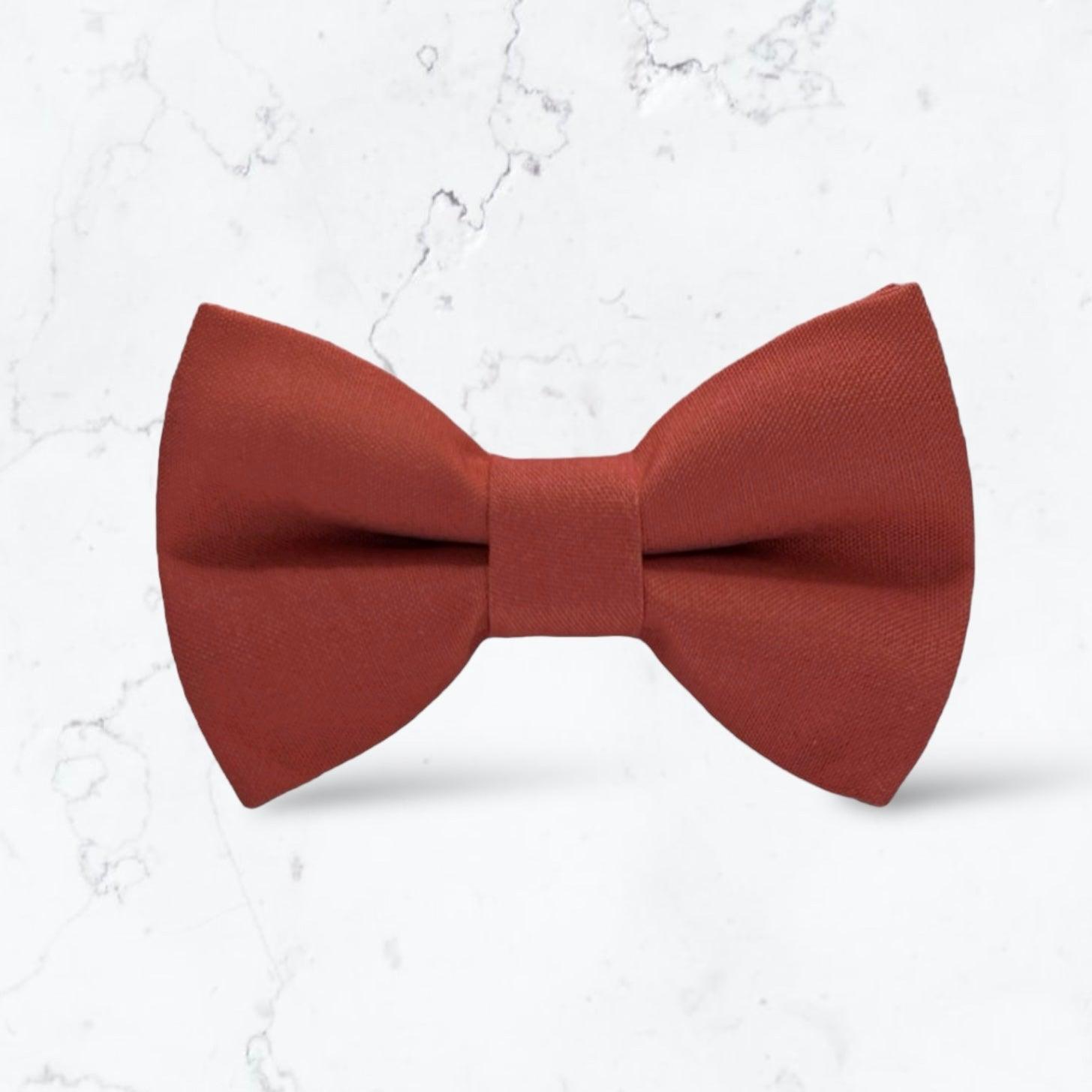 Burnt Orange Bow Tie- the perfect addition to a wedding outfit, groomsmen attire or ring bearer outfit. Our Bow Ties are handmade and pre-tied. They come with an adjustable strap adhered that secures around the neck under the shirt collar.