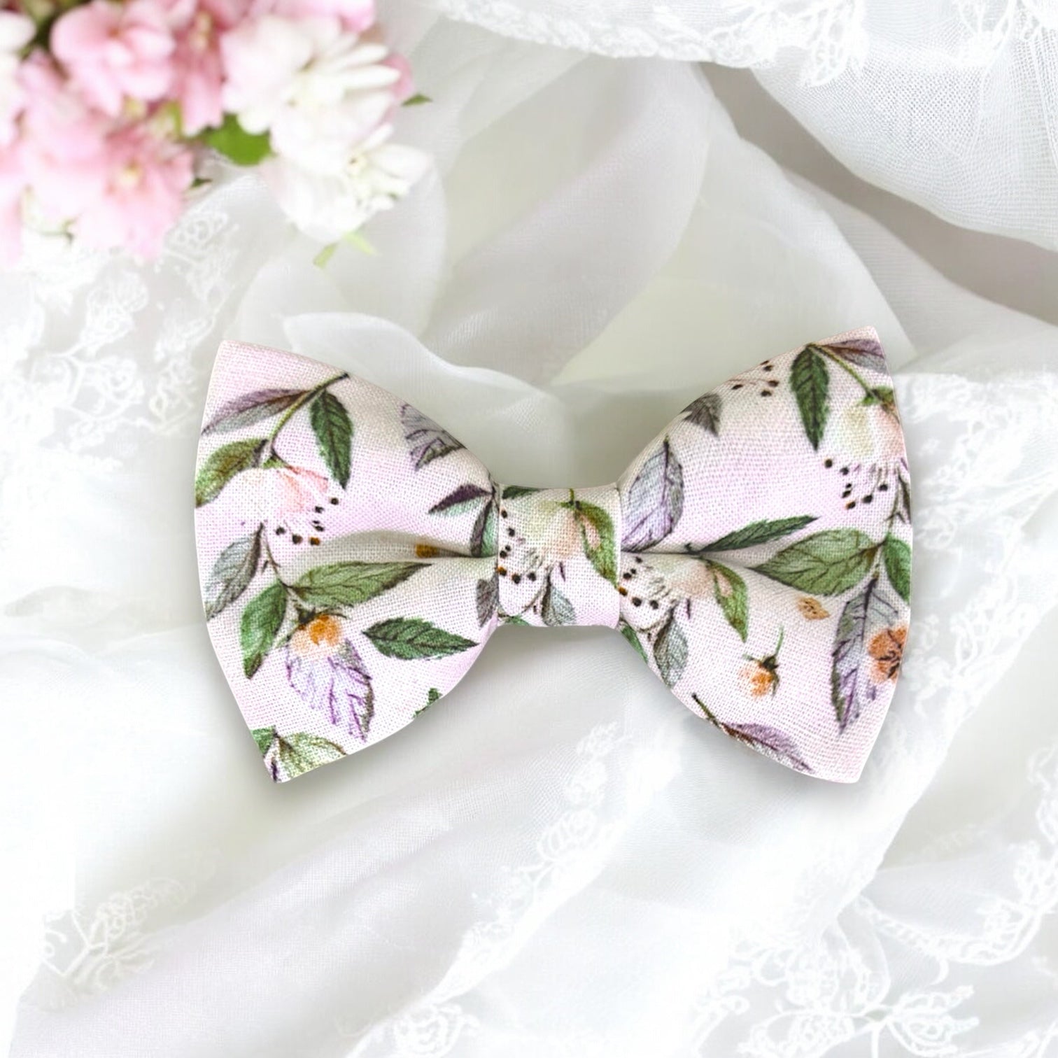 Floral Soft Pink Bow Tie – Pre-Tied Bow Tie for Weddings and Formal Events. Floral soft pink bow tie for romantic weddings, spring celebrations, garden parties, Easter outfits, and blush wedding themes. This elegant soft pink floral bow tie features a delicate botanical print with pastel pink and light greenery accents, making it a perfect choice for grooms, groomsmen, ring bearers, and polished men’s formalwear. Beautifully coordinated with blush, rose gold, champagne, ivory, and sage green wedding palettes, this bow tie adds soft sophistication to any outfit.