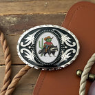 Cowboy Frog Belt Buckle Riding a Raccoon- A customer favorite! Stand out in this western style custom belt buckle. Our belt buckles are PERFECT to dress up your outfit, or to gift to someone special. It is handmade to fit your style.