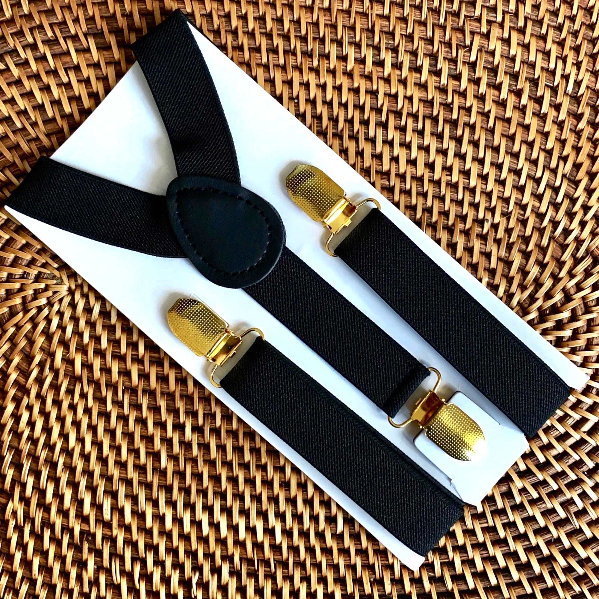 Black Suspenders with Gold Clips- Fast Shipping and Easily Adjustable! These charming black suspenders are the perfect choice for family pictures, weddings, ring bearer outfit, or any special occasion. They are extremely adjustable and comfortable.