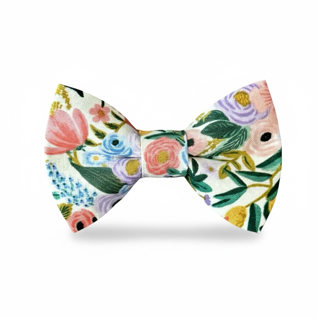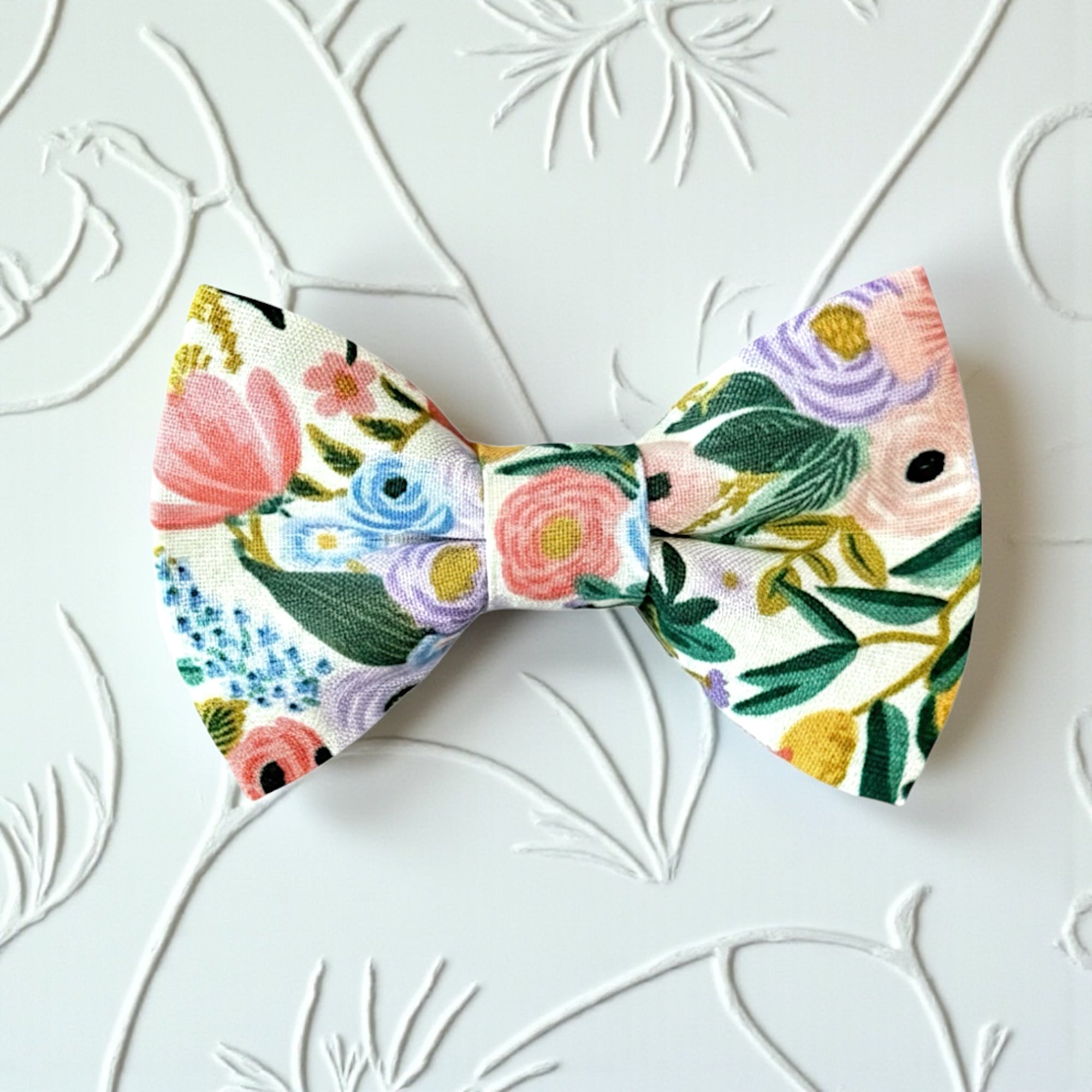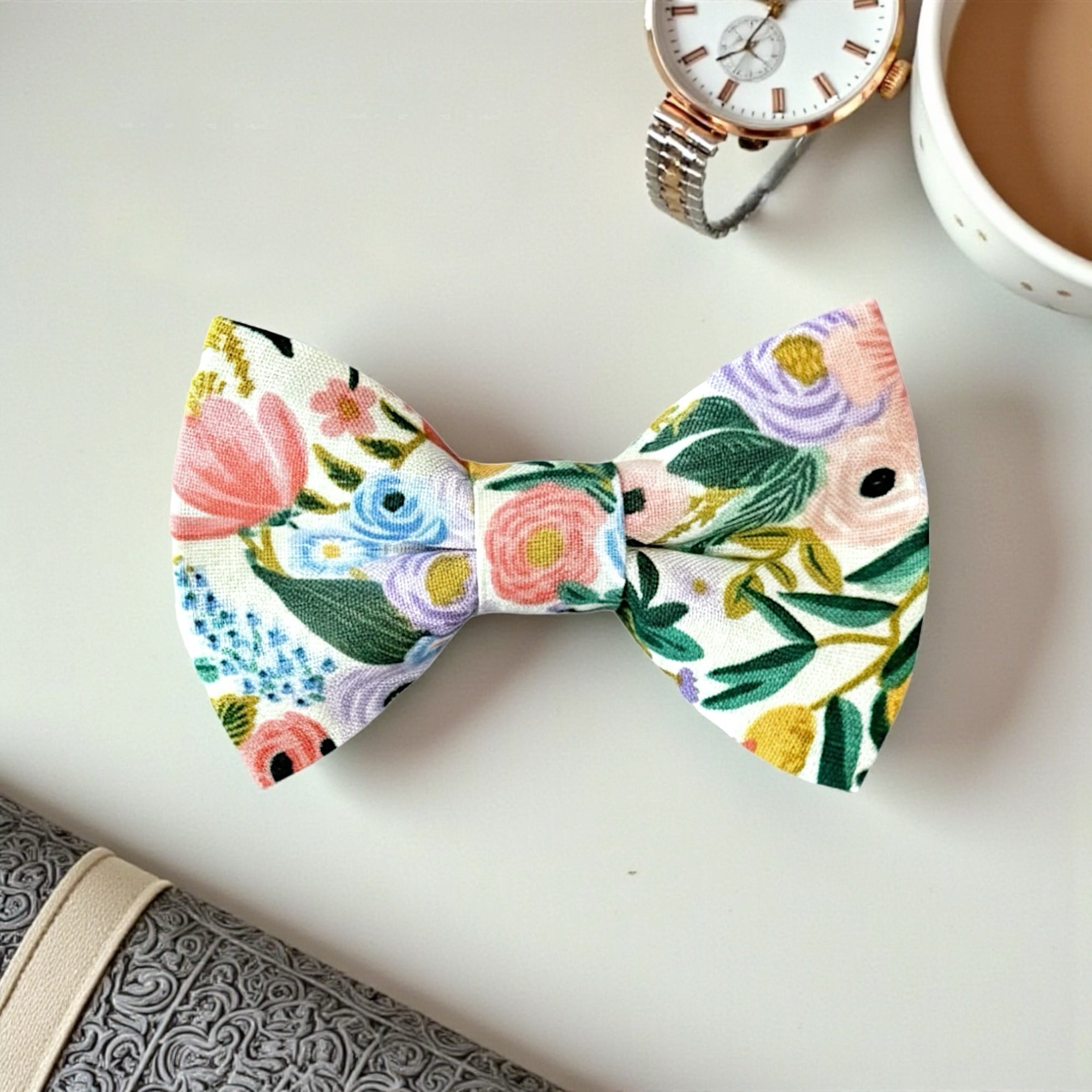 White Floral Bow Tie- Handmade Pre-Tied Wedding Accessory
