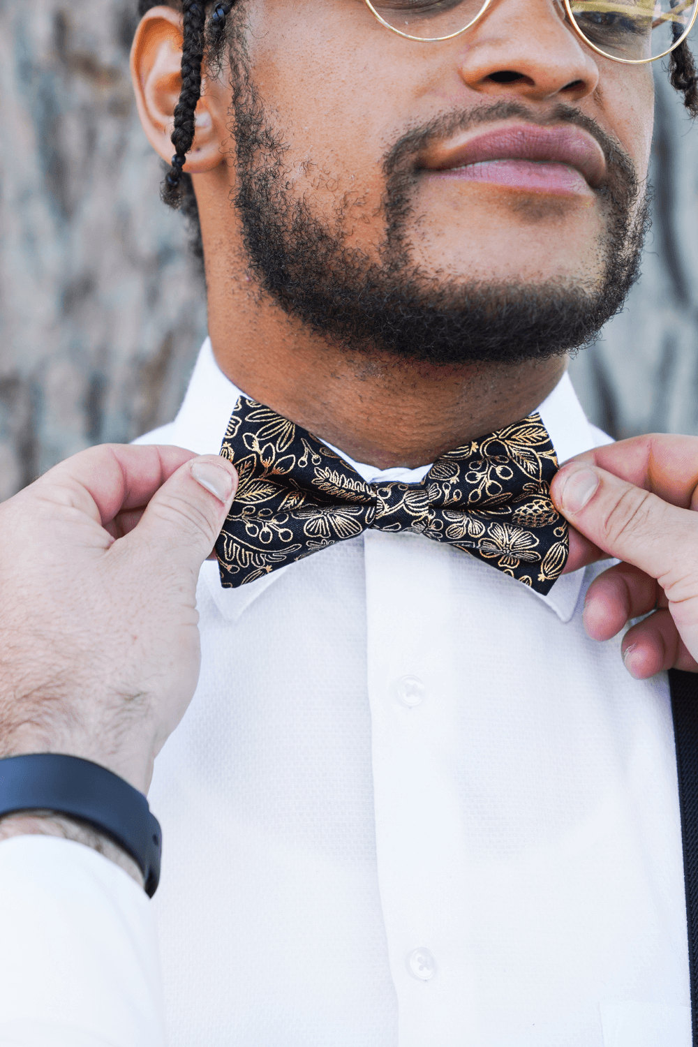 Black & Gold Floral Bow Tie