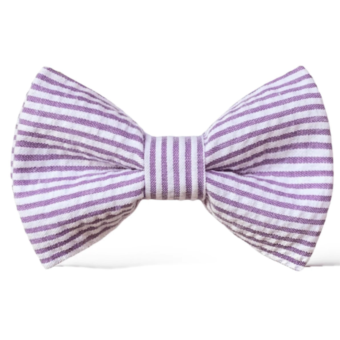 Purple seersucker bow tie- PERFECT for Easter, a wedding or any special occasion! Our Bow Ties are handmade and pre-tied. They come with an adjustable strap adhered that secures around the neck under the shirt collar.