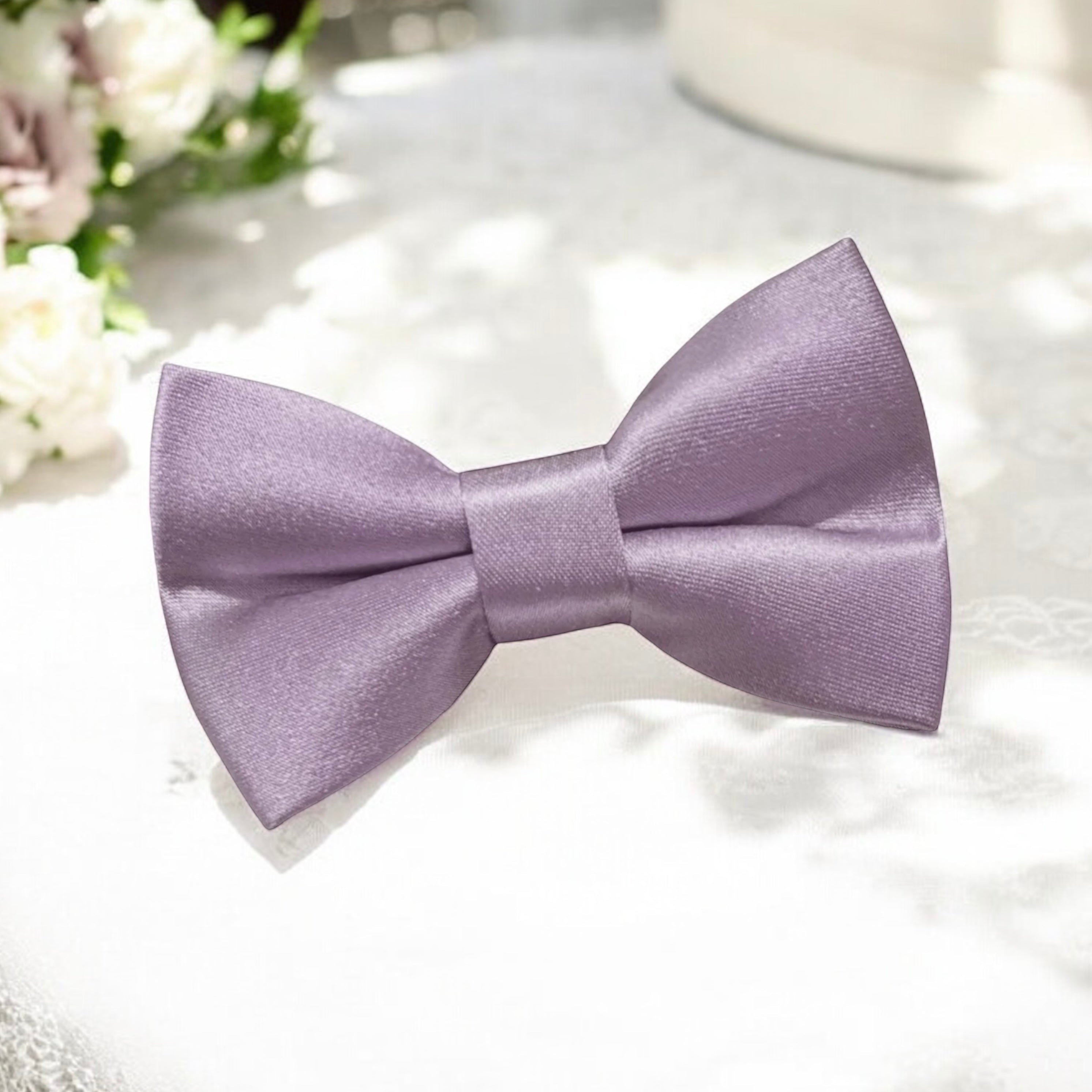 This satin lavender bow tie adds a rich, sophisticated touch to any outfit with its light purple color. It is an ideal accessory for weddings, groomsmen, ring bearers, or any special occasion.