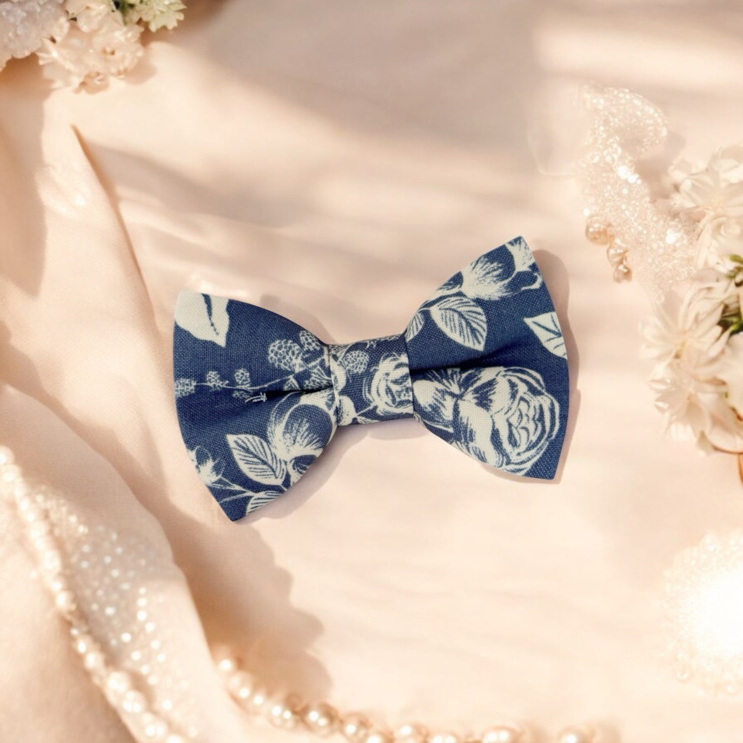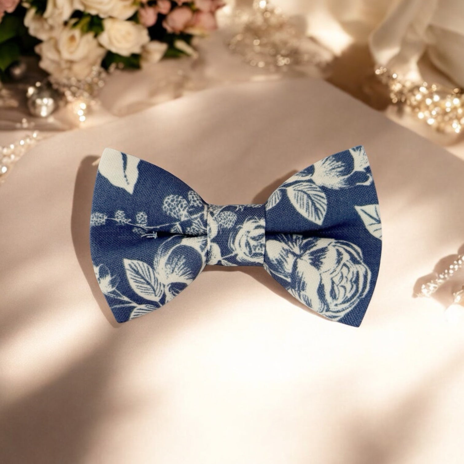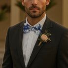 Stylish, timeless, and picture-perfect, this floral steel blue bow tie is a top choice for weddings and formal events—bringing refined charm, handcrafted quality, and high Google search visibility for customers searching for the perfect blue wedding bow tie.