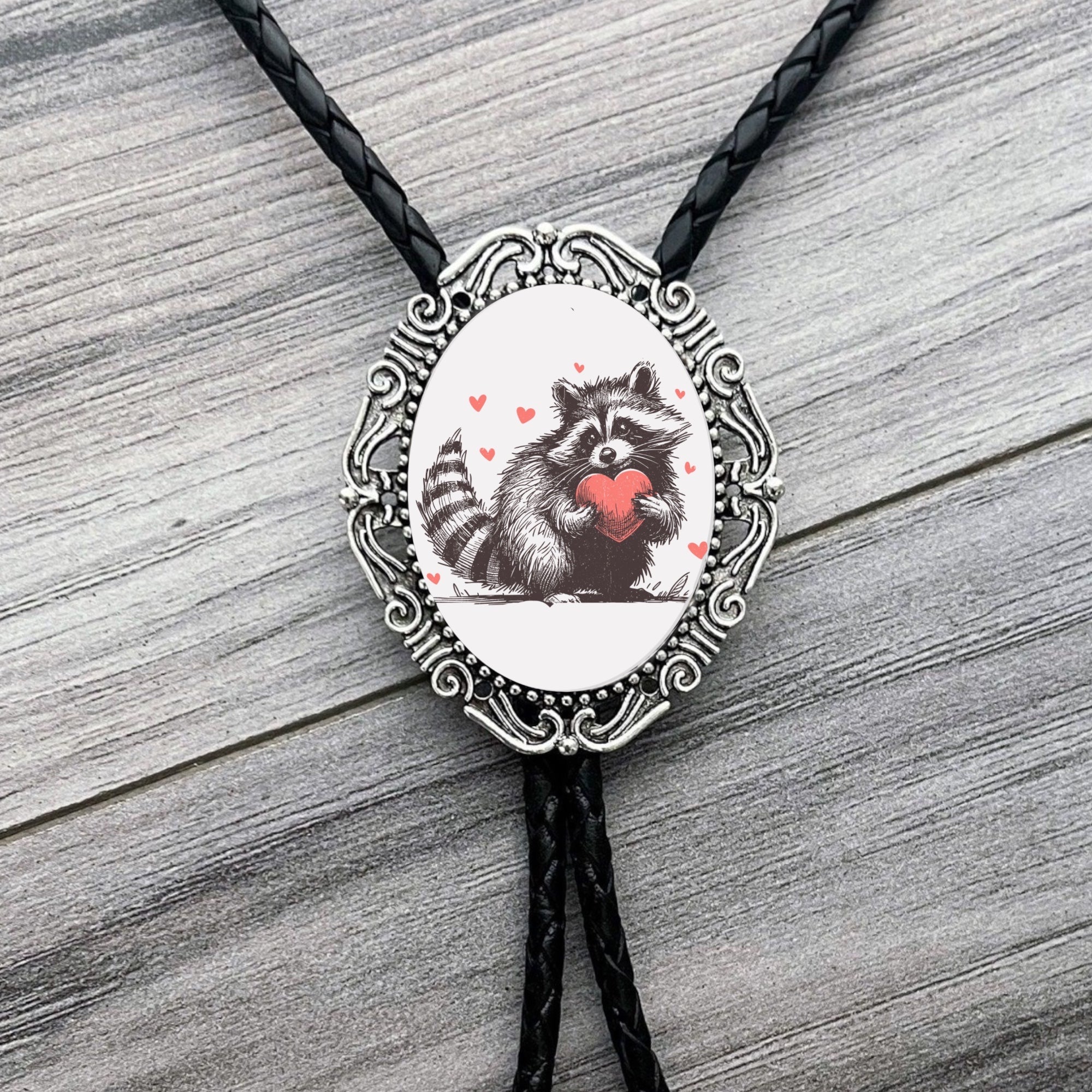 Valentine’s Day Raccoon Bolo Tie, Western Accessory
