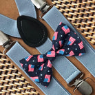 American Flag Bow Tie & Dusty Blue Suspenders Set