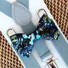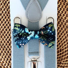 Your special guy will look so handsome when he shows up wearing this Rifle Paper Co bow tie and gray suspenders! This floral bow tie & suspender set is a great choice for family photos, wedding, ring bearer outfit, boho wedding, rustic wedding, birthday celebration or any other special occasion.