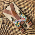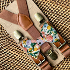 White Garden Floral Bow Tie & Brown Suspenders Set