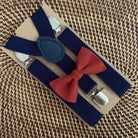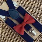 Burnt Orange Bow Tie & Navy Suspenders Set