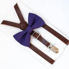 Plum Bow Tie & Dark Brown Vegan Leather Suspenders Set