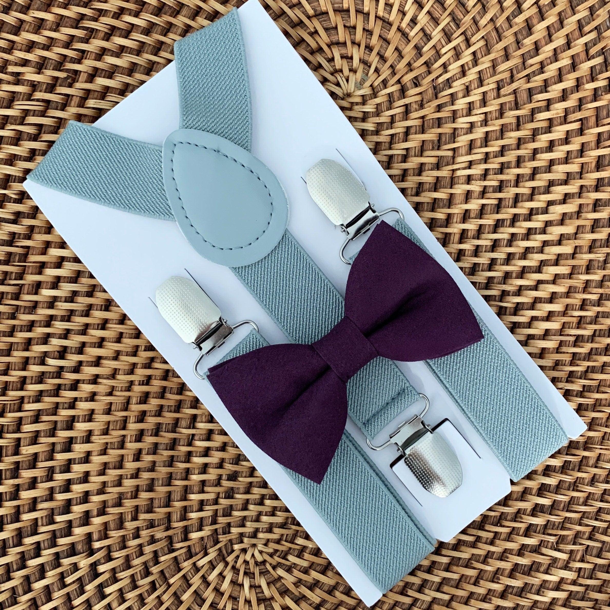 Your special guy will look so handsome when he shows up wearing this fine-looking purple bow tie and gray suspenders! This bow tie & suspender set is a great choice for family photos, wedding, ring bearer outfit, birthday celebration or any other special occasion.