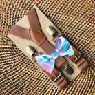 Watercolor Blue Bow Tie & Brown Suspenders Set