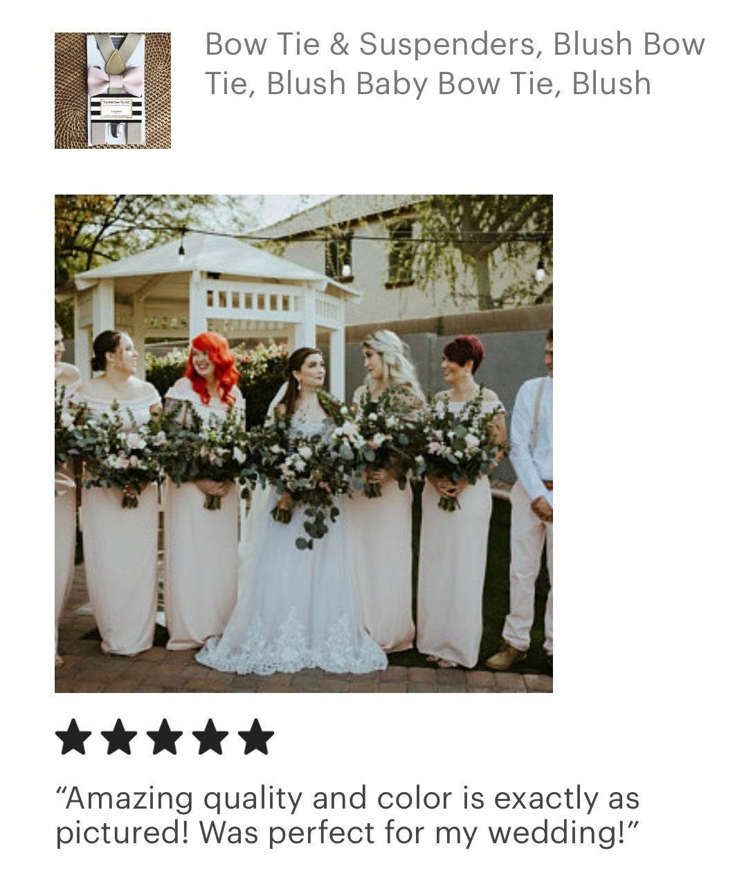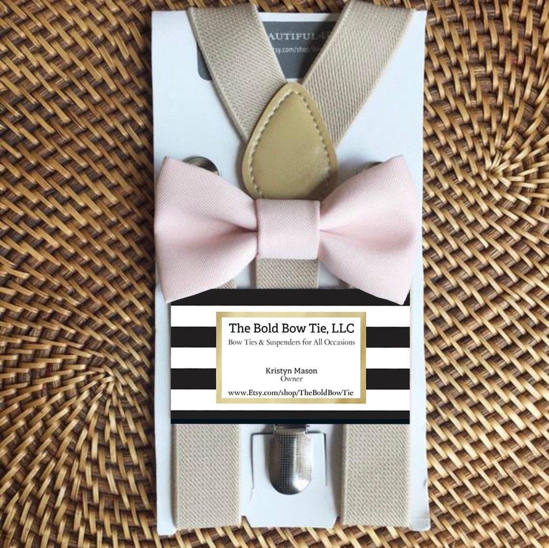Blush Bow Tie & Tan Suspenders- the perfect choice for weddings, groomsmen, ring bearer outfits, birthday celebration or any other special occasion.