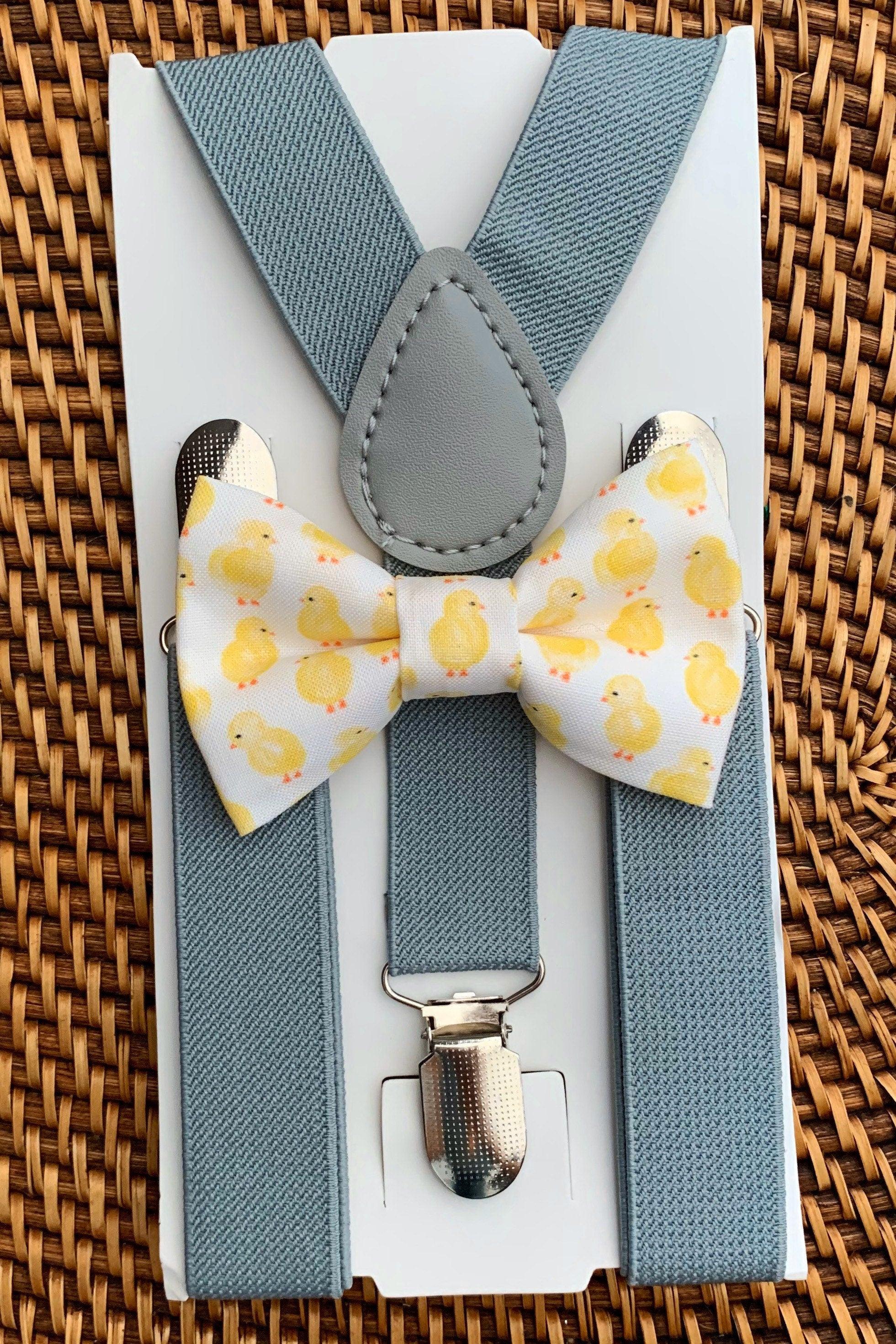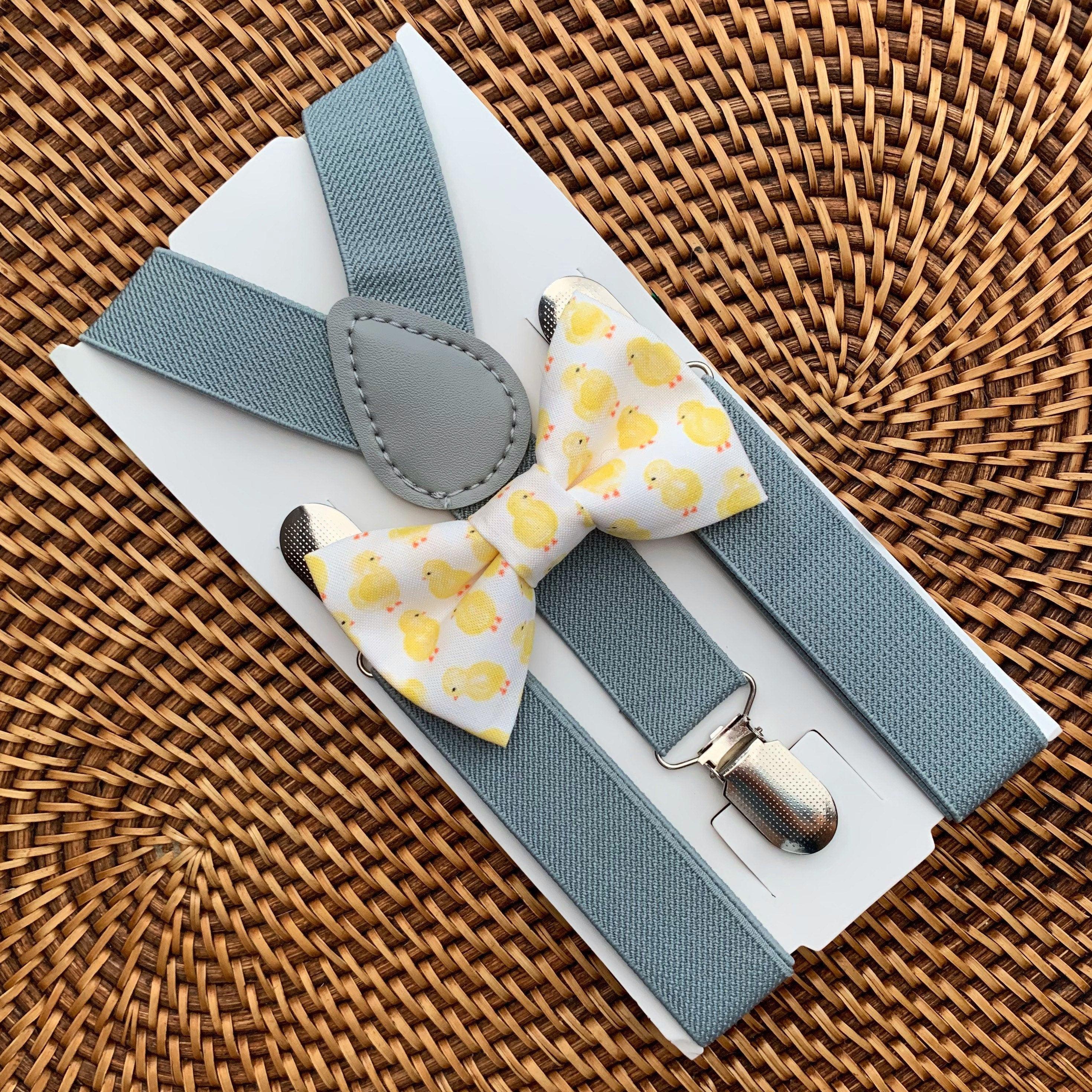 Easter Chicks Bow Tie & Light Grey Suspenders Set