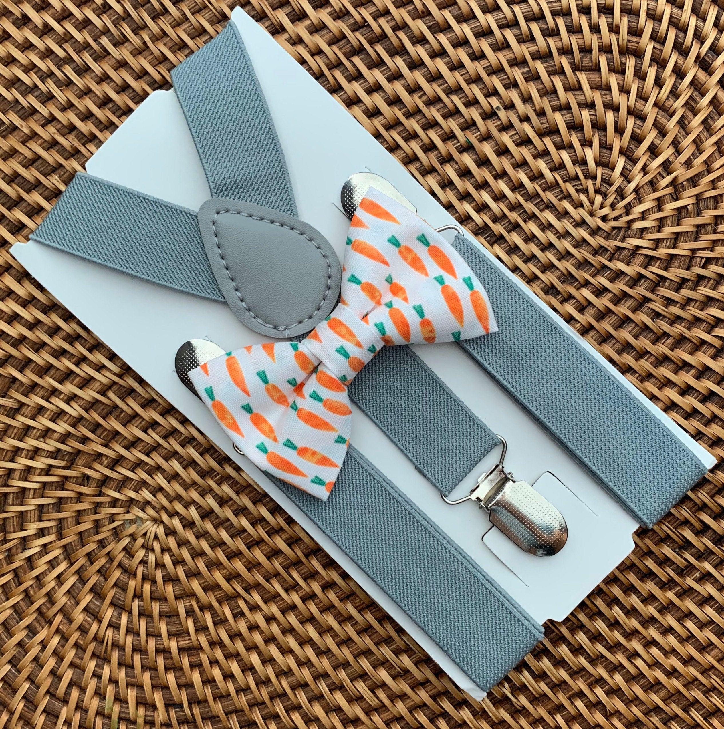 Easter Carrot Bow Tie & Light Gray Suspenders Set