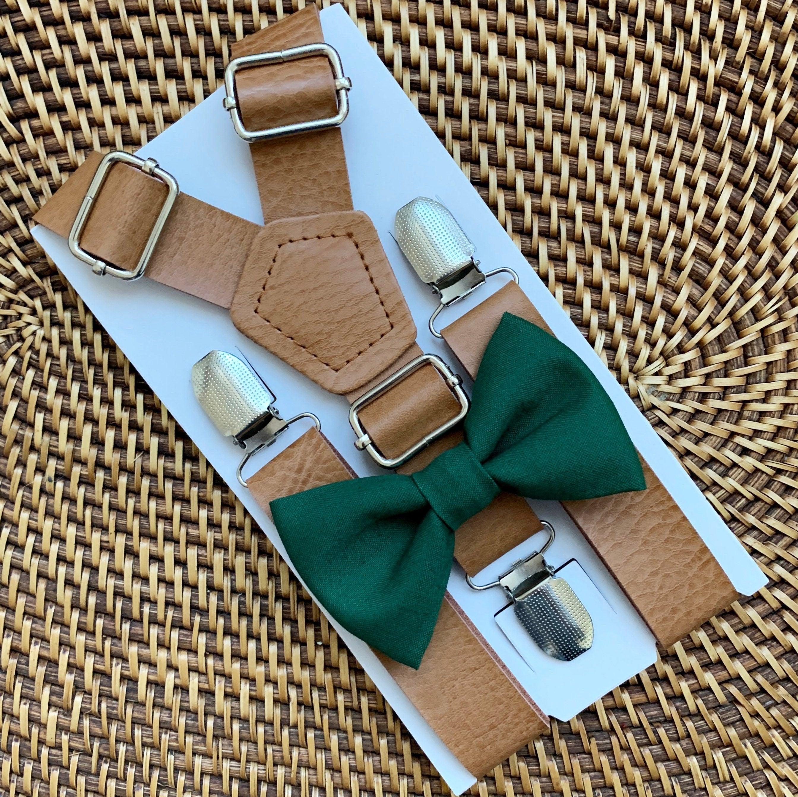 Your special guy will look so dashing when he shows up wearing this green bow tie and faux leather suspenders set! This bow tie is a great choice for family photos, wedding, ring bearer outfit, page boy outfit, birthday celebration or any other special occasion.