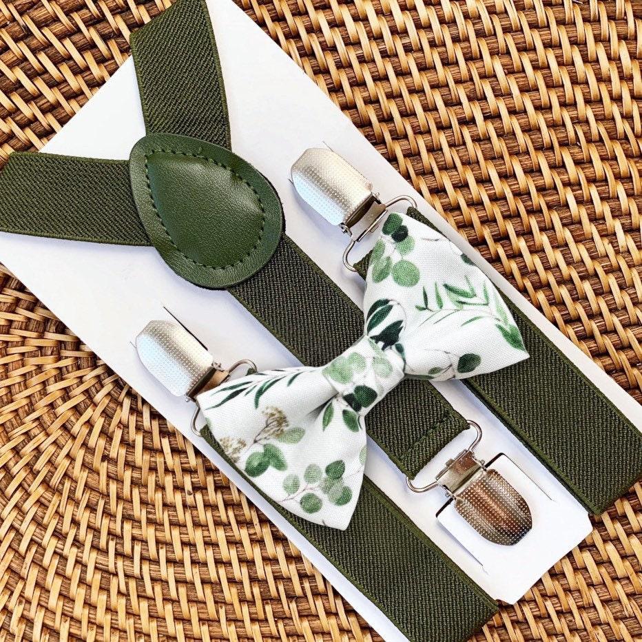 This floral sage green bow tie & suspenders set is a great choice for mens suspenders, women suspenders, suspenders men, groomsmen in a wedding, sage bow tie, ring bearer outfit, moss bowtie, or any other special occasion.