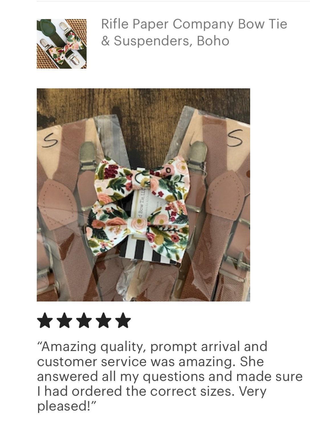 Maroon Rifle Paper Co Bow Tie & Olive Suspenders Set - The Perfect Wedding Look! This floral bow tie & suspenders is a great choice for family photos, wedding, groomsmen, ring bearer outfit, birthday celebration or any other special occasion.