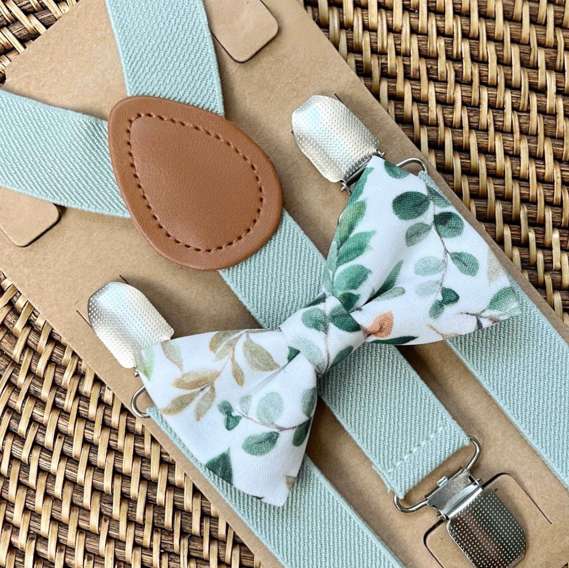 Your special guy will look so handsome when he shows up wearing this sage floral green bow tie and sage suspenders! This bow tie & suspenders set is a great choice for family photos, wedding, ring bearer outfit, birthday celebration or any other special occasion.