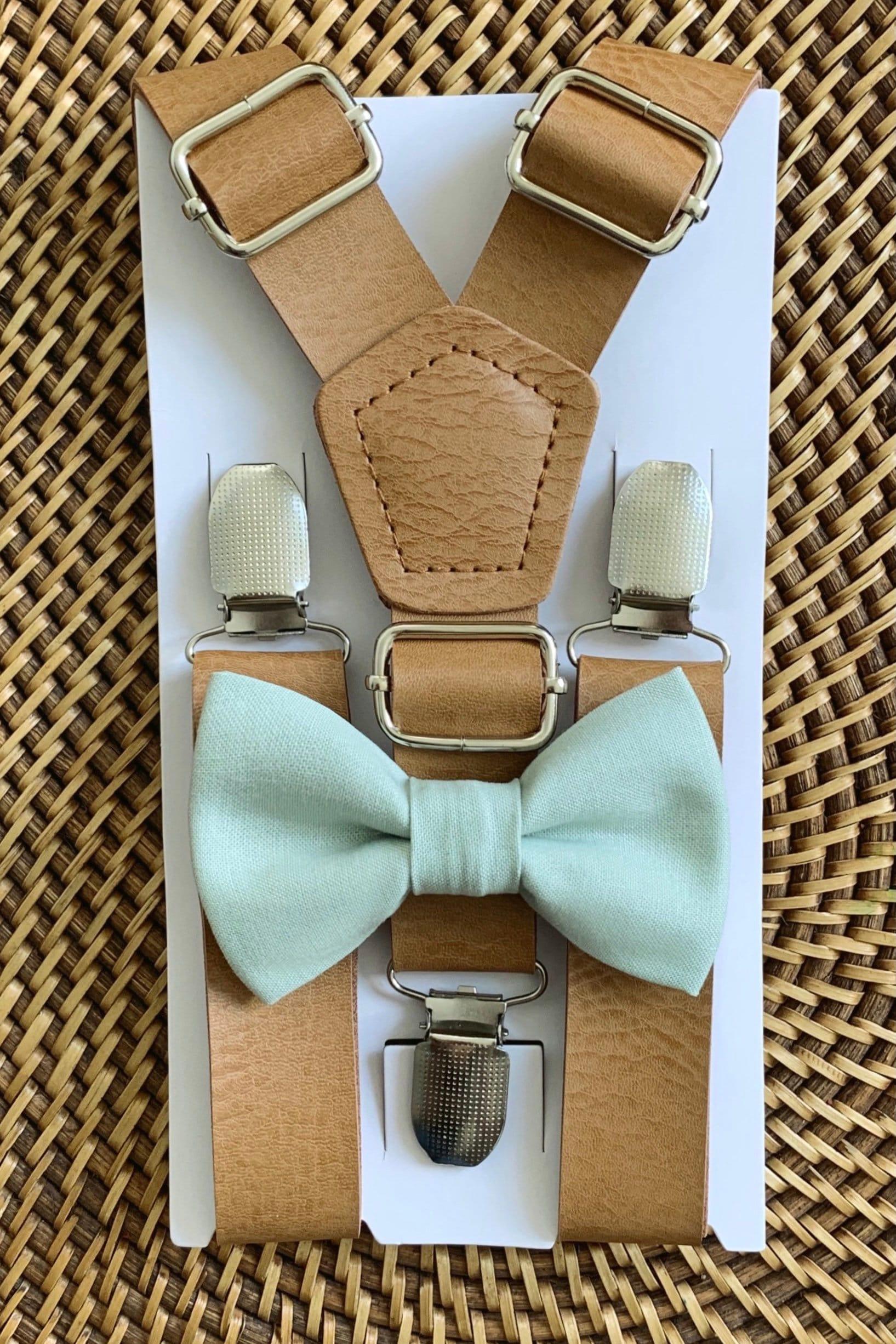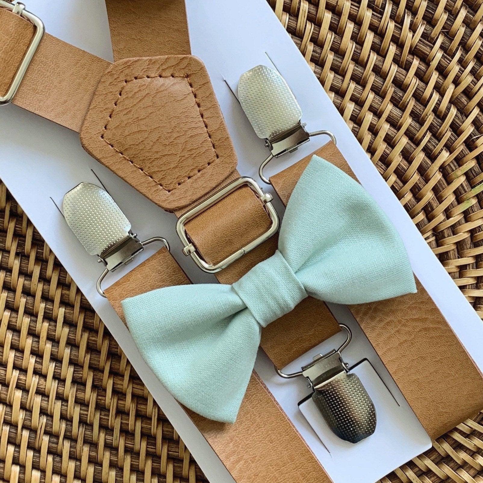 Your special guy will look so dashing when he shows up wearing this sage green bow tie and faux leather suspenders set! This bow tie is a great choice for family photos, wedding, ring bearer outfit, page boy outfit, birthday celebration or any other special occasion.