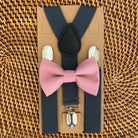 Dusty Rose Bow Tie & Dark Grey Suspenders Set