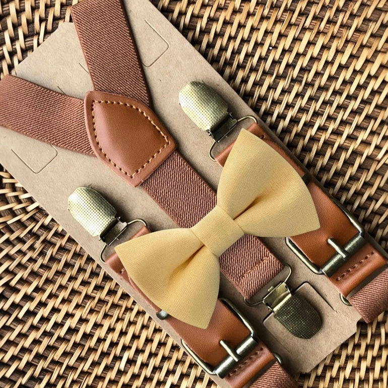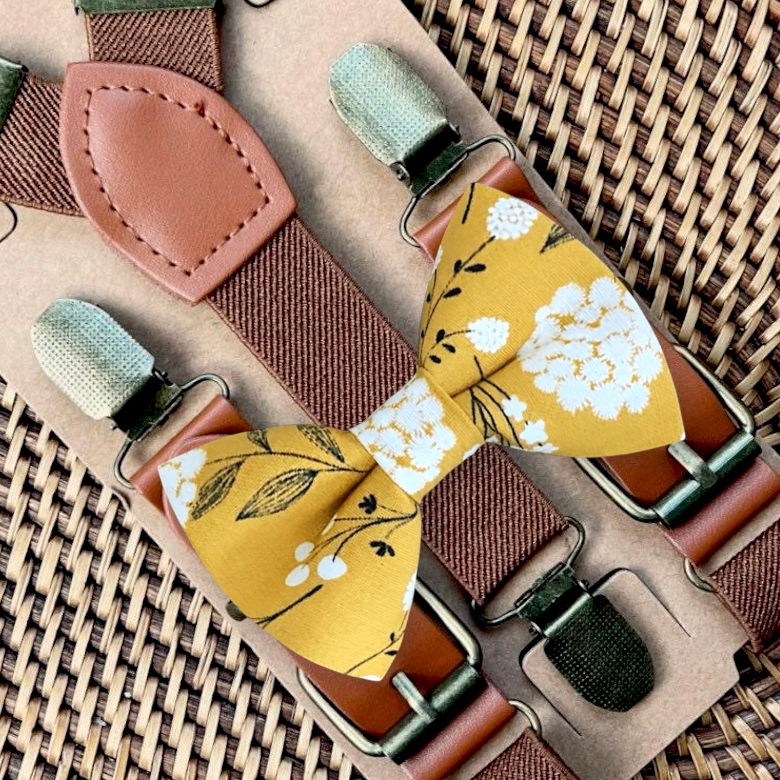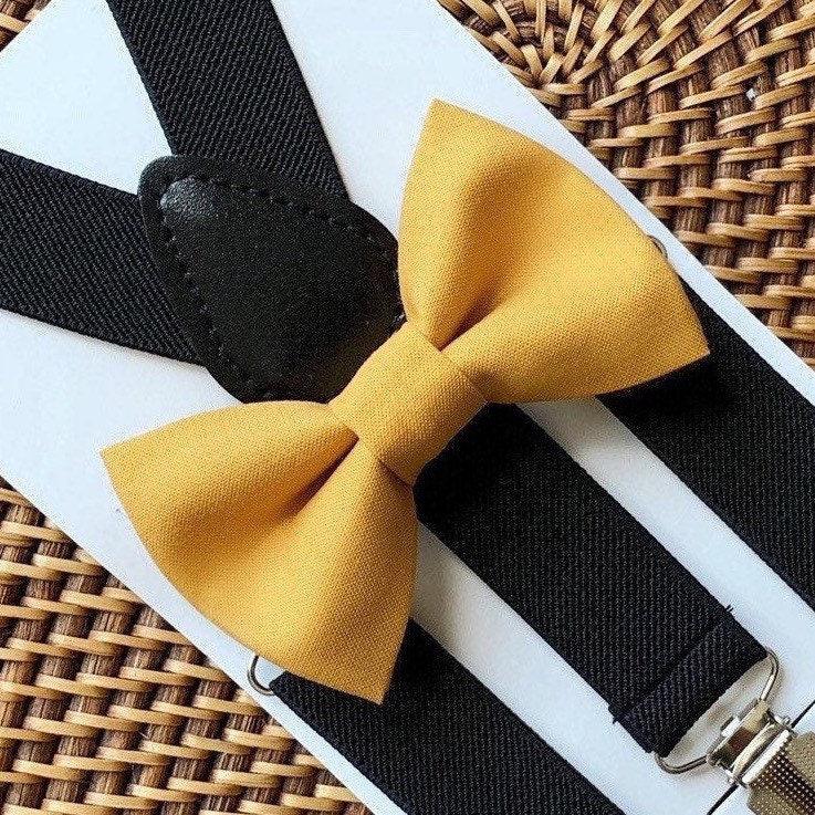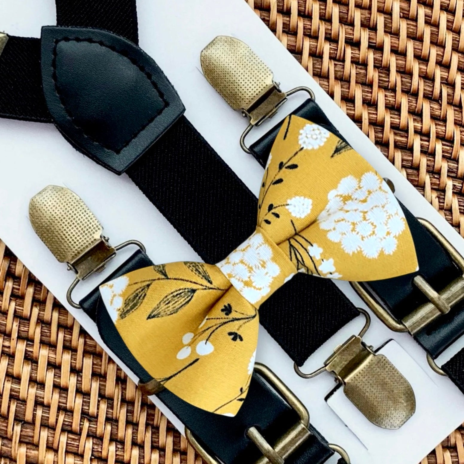 Brighten your look with our Yellow Bow Tie & Suspenders Sets, available in every shade from soft light yellow to bold mustard and unique mustard floral designs. Handcrafted with premium fabrics and durable hardware, these yellow bow ties with matching suspenders are perfect for weddings, spring celebrations, summer events, family photos, or formal occasions.
