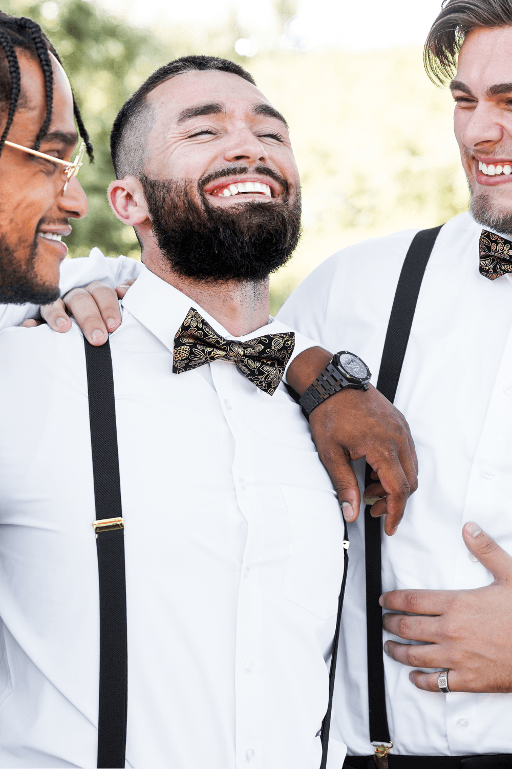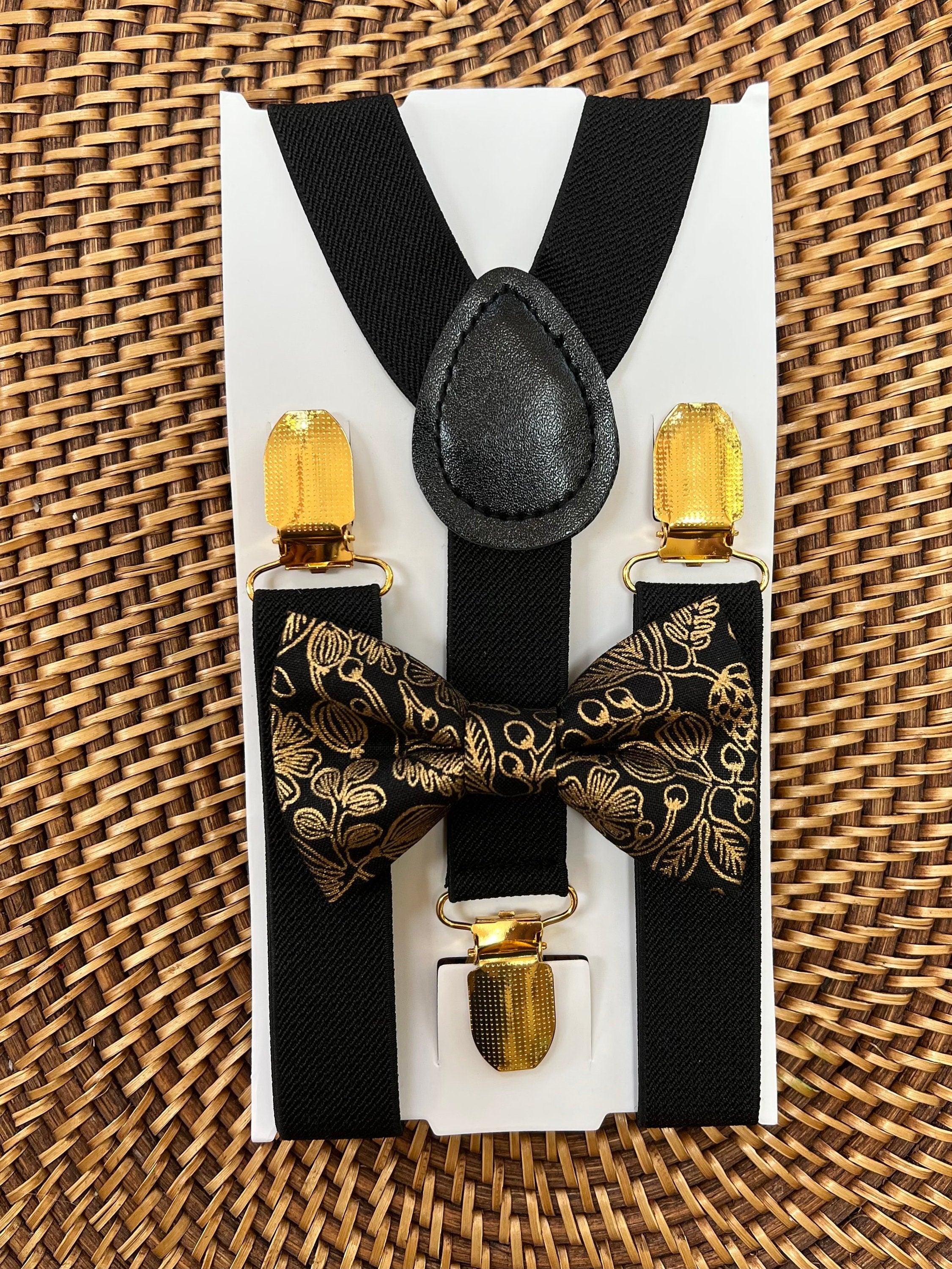 Black and Gold Bow Tie & Black Suspenders with Gold Clips- The Perfect Wedding Look! Our bow tie & suspenders are a great choice for family photos, wedding, ring bearer outfit, birthday celebration or any other special occasion.