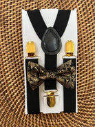 Black & Gold Bow Tie and Black & Gold Suspenders Set - Wedding & New Years