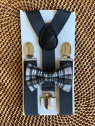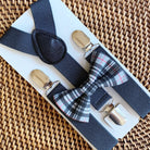 Gray Plaid Bow Tie & Dark Gray Suspenders Set