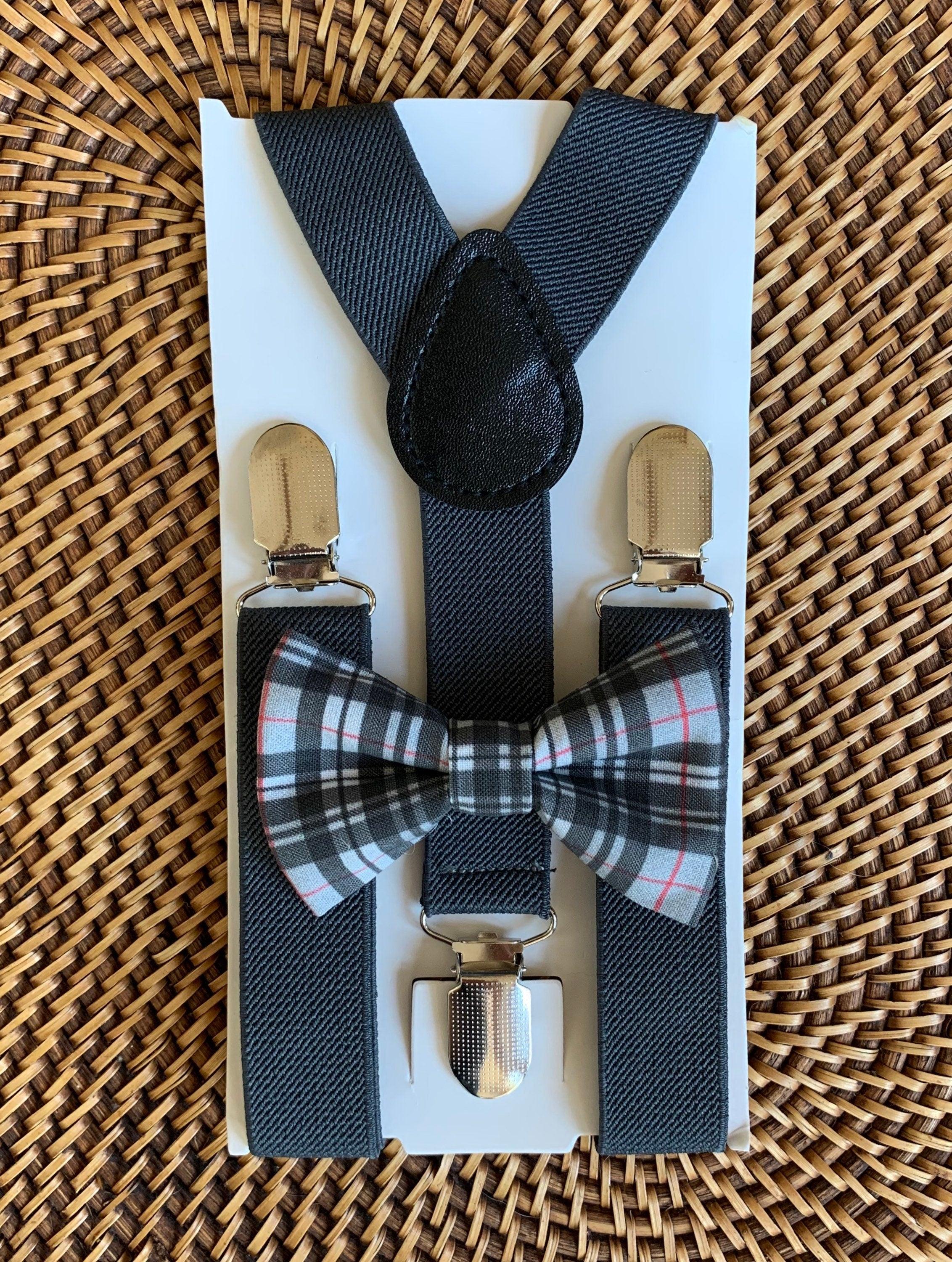 Gray plaid bow tie and dark grey suspenders set for Christmas weddings, holiday family photos, winter formal events, school Christmas concerts, church holiday services, and New Year’s Eve celebrations. This pre-tied grey plaid bow tie with adjustable dark grey suspenders is a best-selling holiday outfit accessory set for boys and men, perfect for winter wedding parties, Christmas portraits, ring bearer outfits, matching father and son outfits, and festive dress-up in November and December. The classic grey plaid design pairs beautifully with holiday color palettes, Christmas sweaters, winter suits, and formal dress shirts, making it a versatile favorite for Thanksgiving gatherings through New Year’s celebrations.