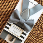 Gray Bow Tie & Light Gray Suspenders Set- Your special guy will look so handsome when he shows up wearing this charming gray bow tie and gray suspenders set! Our gray bow tie is a great choice for family photos, wedding, ring bearer outfit, birthday celebration or any other special occasion.