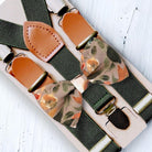 Taupe Autumn Floral Bow Tie & Olive Buckle Suspenders Set