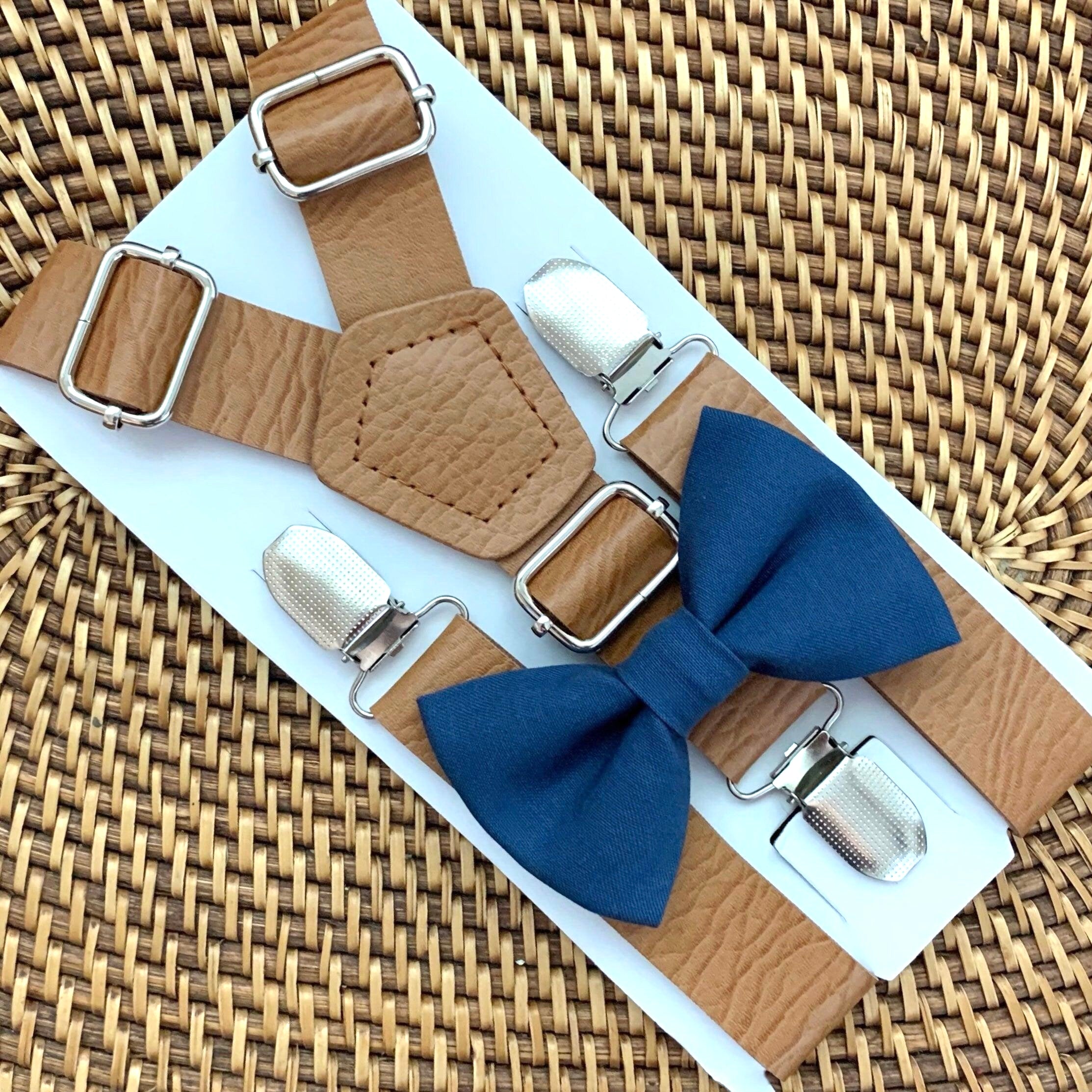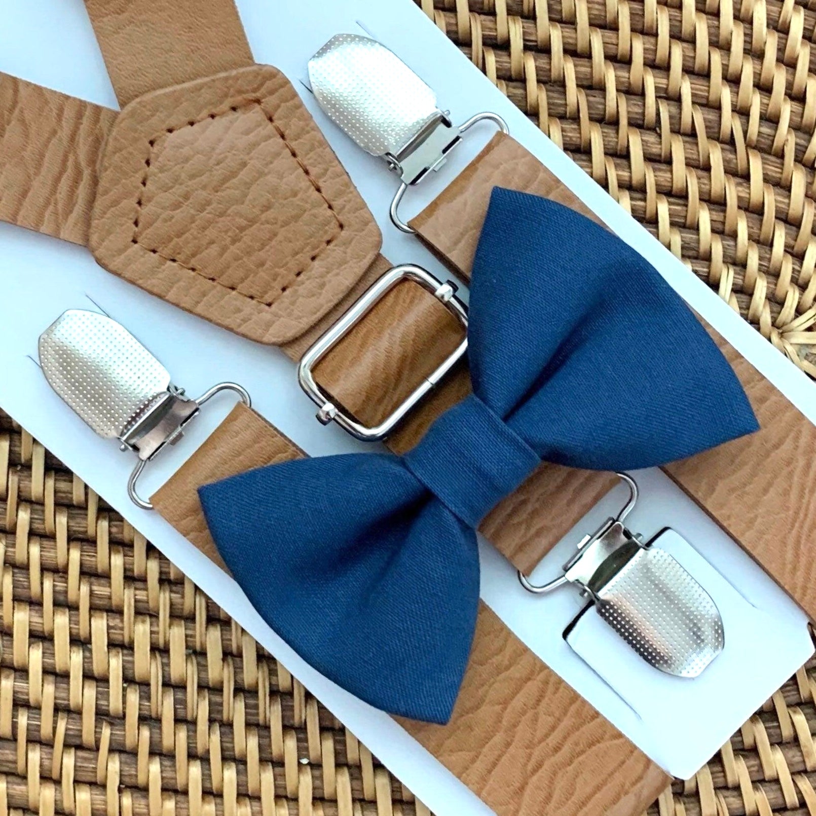 Your special guy will look so dashing when he shows up wearing this slate blue bow tie and faux leather suspenders set! This bow tie is a great choice for family photos, wedding, ring bearer outfit, page boy outfit, birthday celebration or any other special occasion.