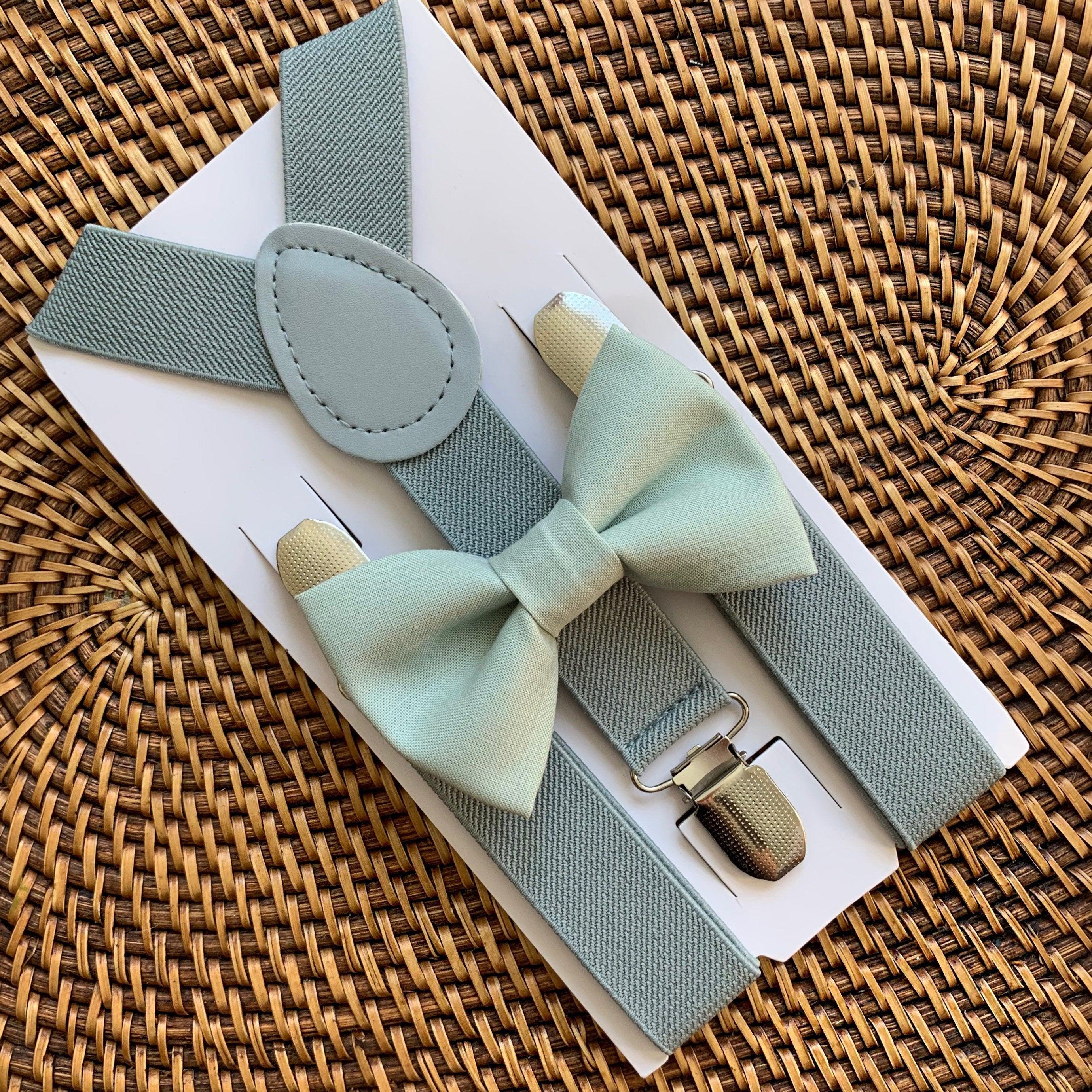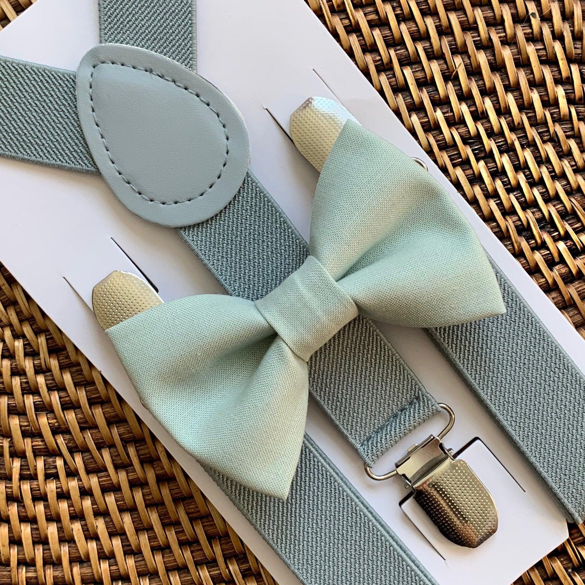 Your special guy will look so handsome when he shows up wearing this elegant sage green bow tie and grey suspenders (with silver clips). This set is a great choice for family photos, wedding, ring bearer outfit, birthday celebration or any other special occasion.