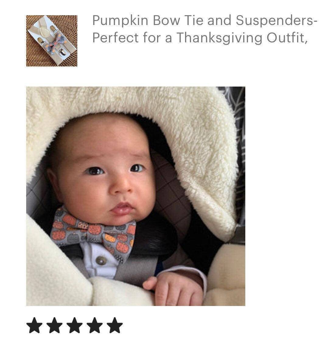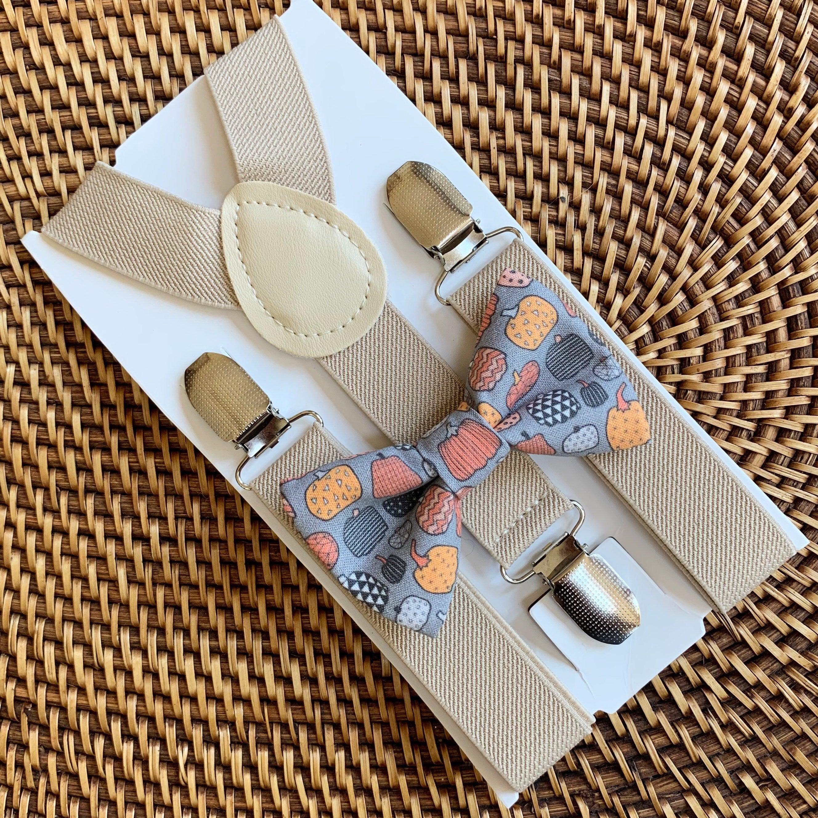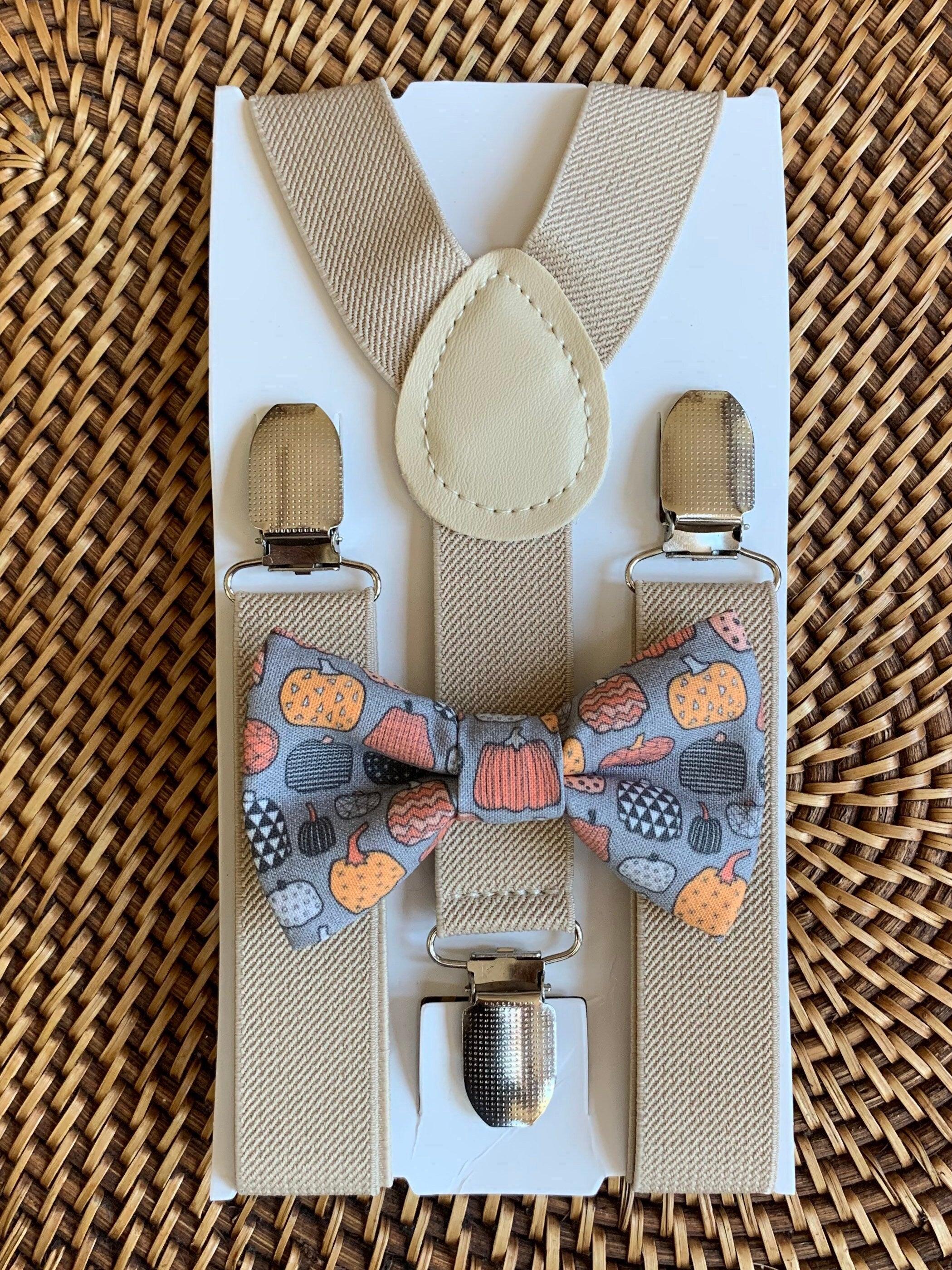 Your special guy will look so handsome when he shows up wearing this pumpkins bow tie and tan suspenders! This set is a great choice for family photos, wedding, Thanksgiving outfit, Halloween or any other special occasion.