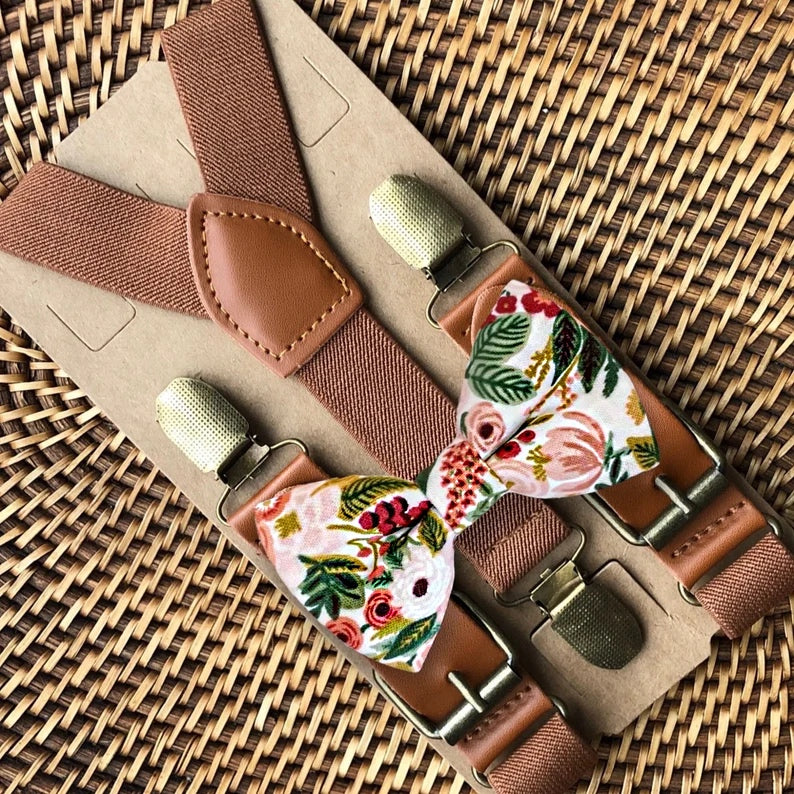 Rifle Paper Co Floral Bow Tie & Cognac Brown Suspenders