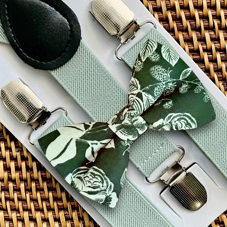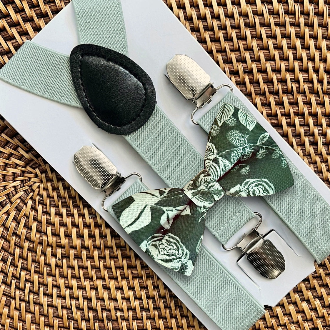 Premium suspenders paired with some of our best-selling bow ties to enhance your outfit. Each set includes a suspender and bow tie. Our pre tied bow ties are PERFECT for groomsmen, ring bearer outfit, wedding, work suspenders, women's suspenders, leather suspenders or any other special occasion!