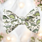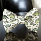 Green Dinosaur Bow Tie: PERFECT for a dinosaur birthday party or ring bearer outfit! Our Bow Ties are handmade and pre-tied. They come with an adjustable strap adhered that secures around the neck under the shirt collar.