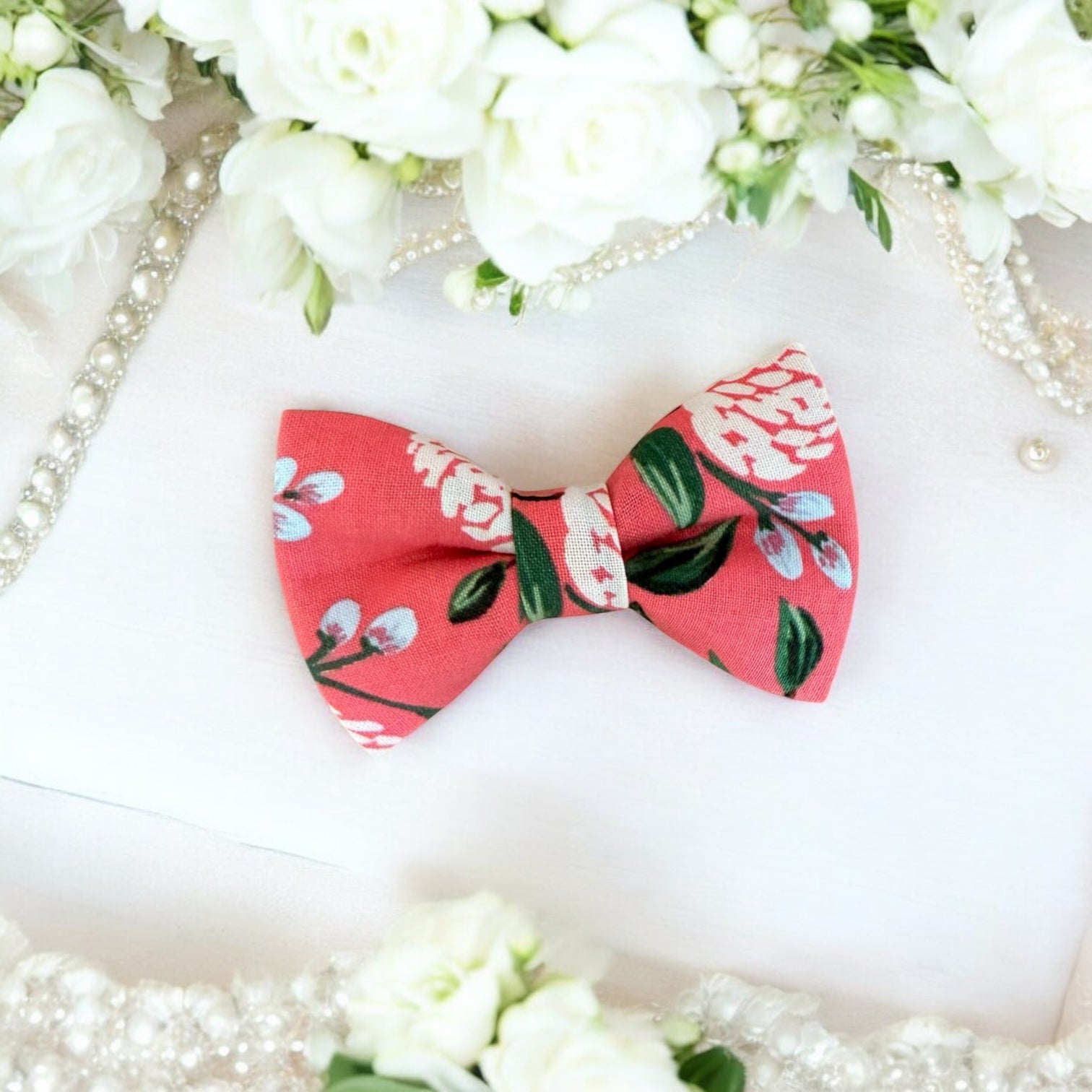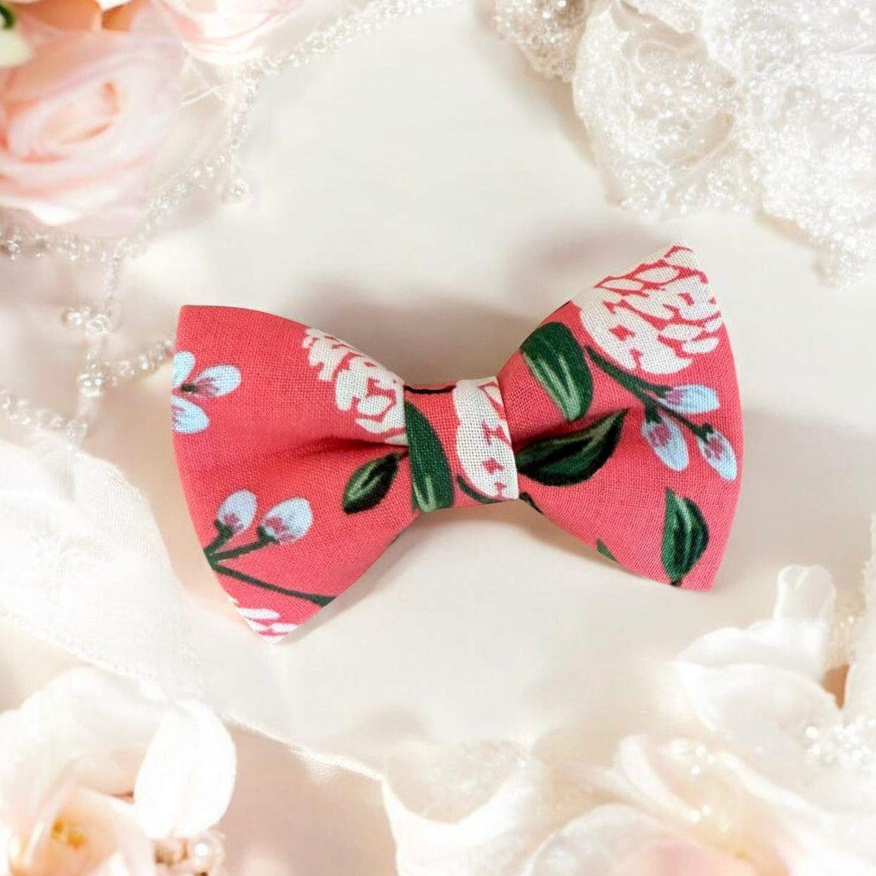 Introducing our whimsical hydrangea pink bow tie. This gorgeous bowtie helps make wedding photos look unforgettable when worn by groomsmen and ring bearers. It's also the perfect choice for grooms, as it is elegant for weddings and special occasions.