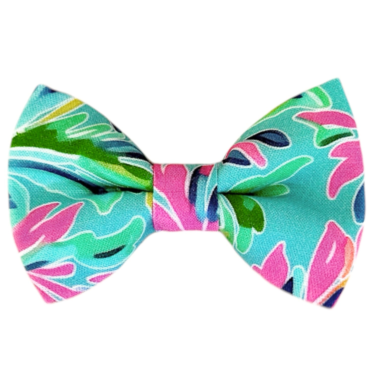 Preppy Blue Bow Tie- Aqua, Pink & Green