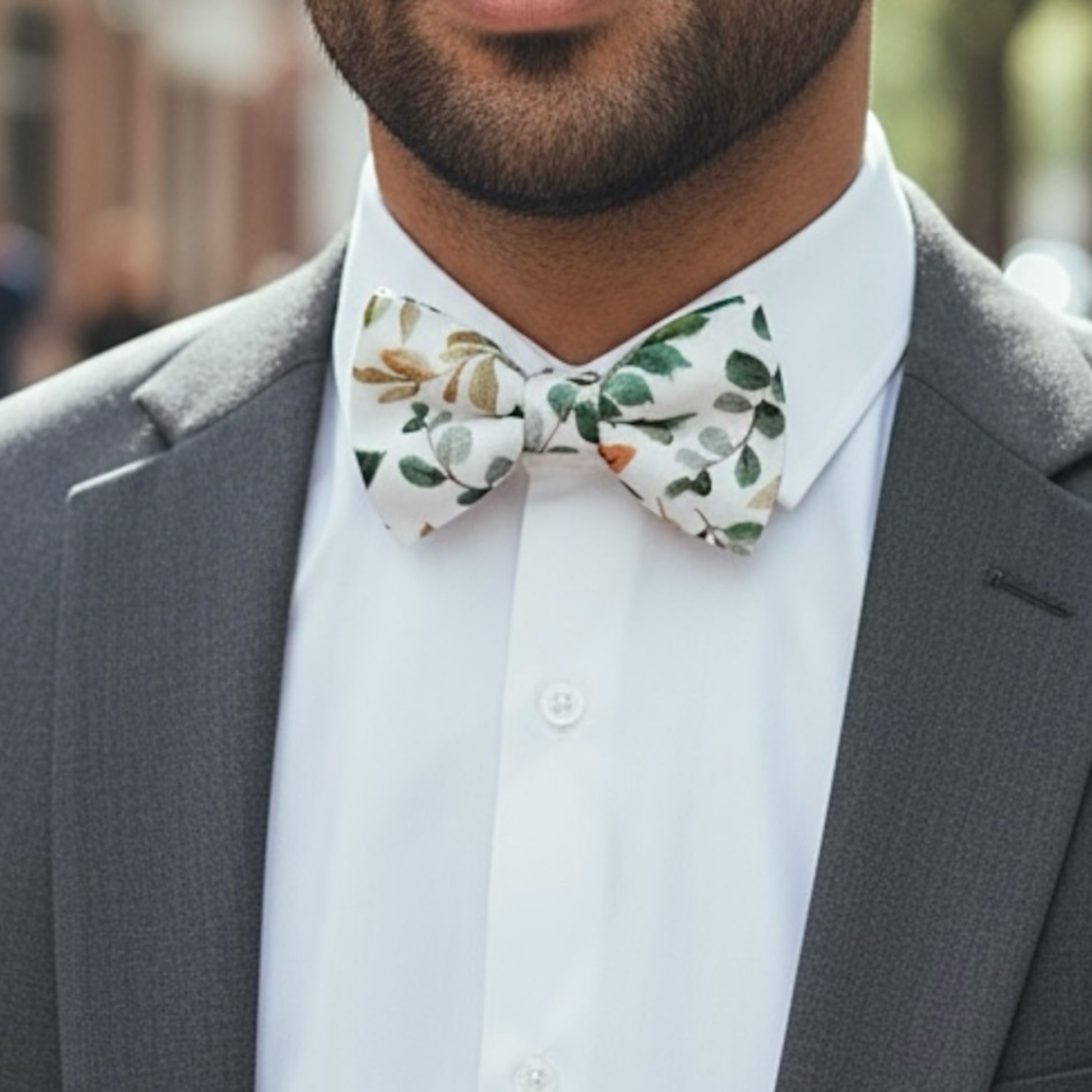 Elegant, natural, and timeless, this Floral Sage Green Bow Tie is the perfect finishing touch for romantic and greenery-inspired weddings.