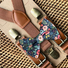Navy Wonderland Garden Bow Tie & Cognac Buckle Suspenders Set