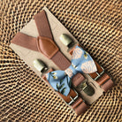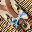 Dusty Blue Hydrangea Bow Tie & Brown Suspenders Set