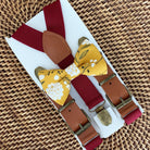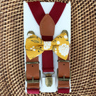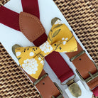 Mustard Floral Bow Tie & Burgundy Buckle Suspenders Set