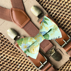 Green Floral Bow Tie & Cognac Leather Suspenders