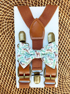 Whimsical Reindeer Bow Tie & Cognac Buckle Suspenders Set