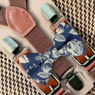 Steel Blue Floral Bow Tie & Dark Brown Suspenders Set