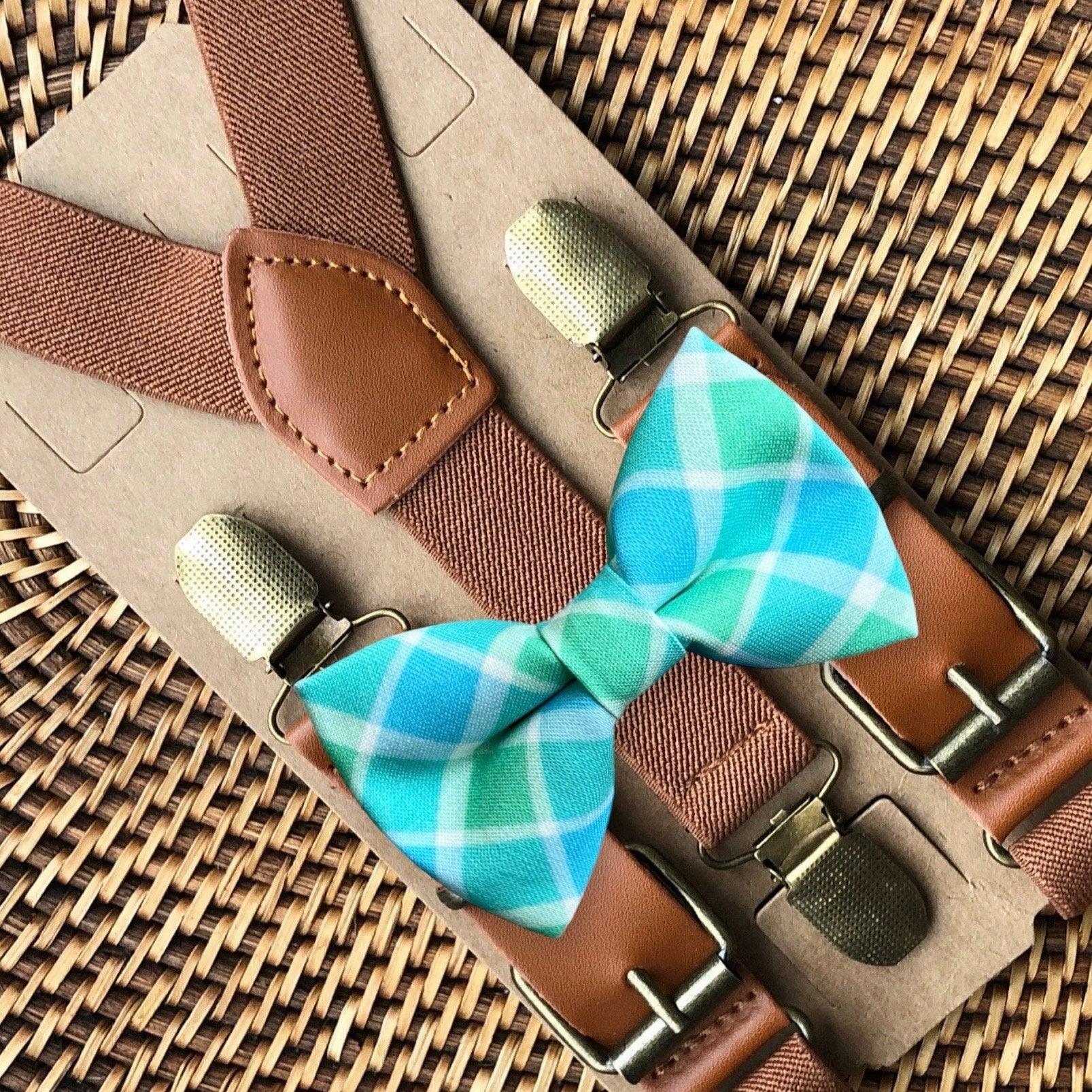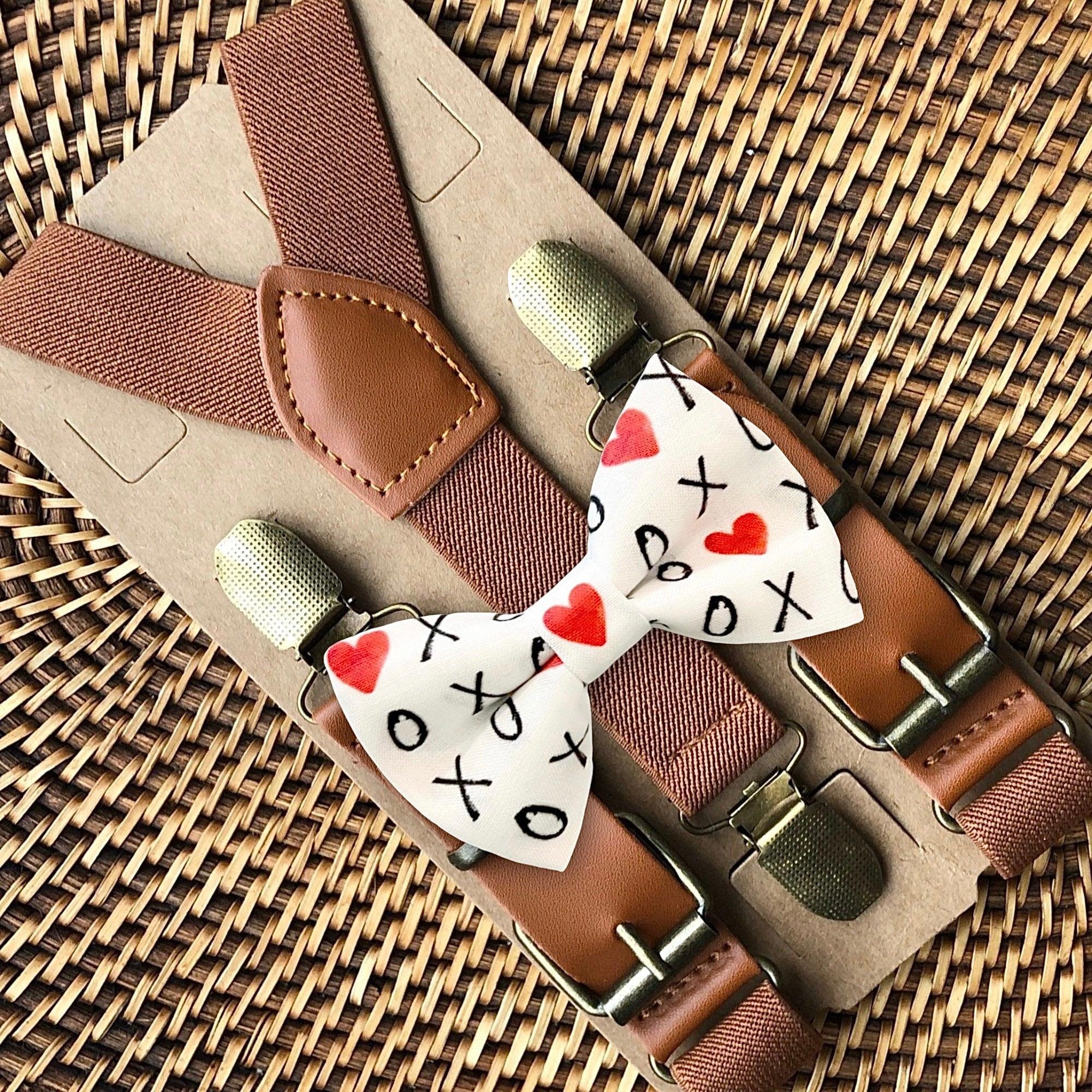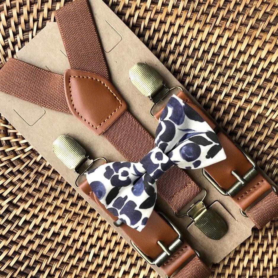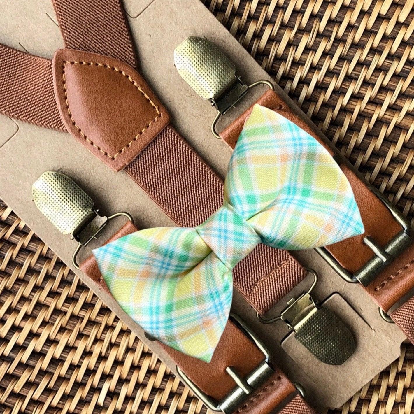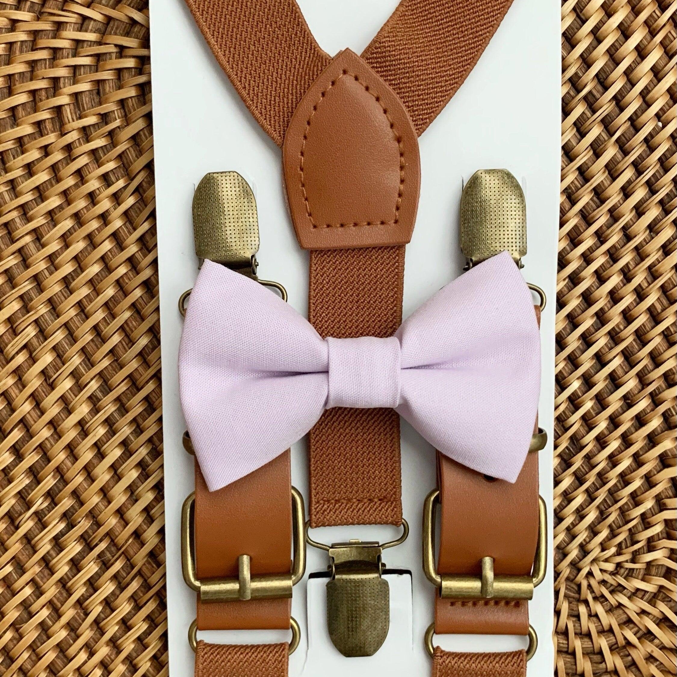 Elastic suspenders with vegan leather buckles matched with some of our best-selling bow ties to complete your outfit. Each set includes a suspender and bow tie. Our pre tied bow ties are PERFECT for groomsmen, ring bearer outfit, wedding, work suspenders, women's suspenders, leather suspenders or any other special occasion!